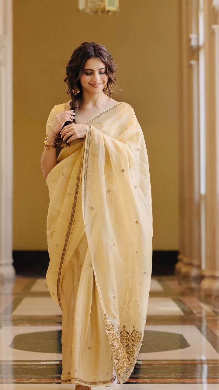 अगर आप रिसेप्शन पार्टी के लिए शानदार साड़ी लुक सर्च कर रहीं हैं तो एक्ट्रेस का ये येलो साड़ी लुक परफेक्ट है।