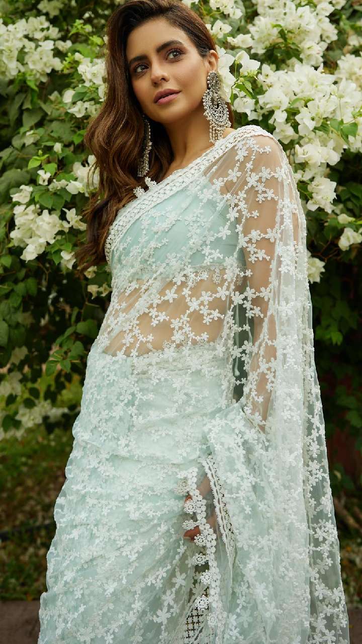 अगर आप अपने लुक को डिफरेंट और हॉट बनाना चाहती हैं तो आप आमना शरीफ की तरह ही नेट की साड़ी को कैरी कर सकती हैं।