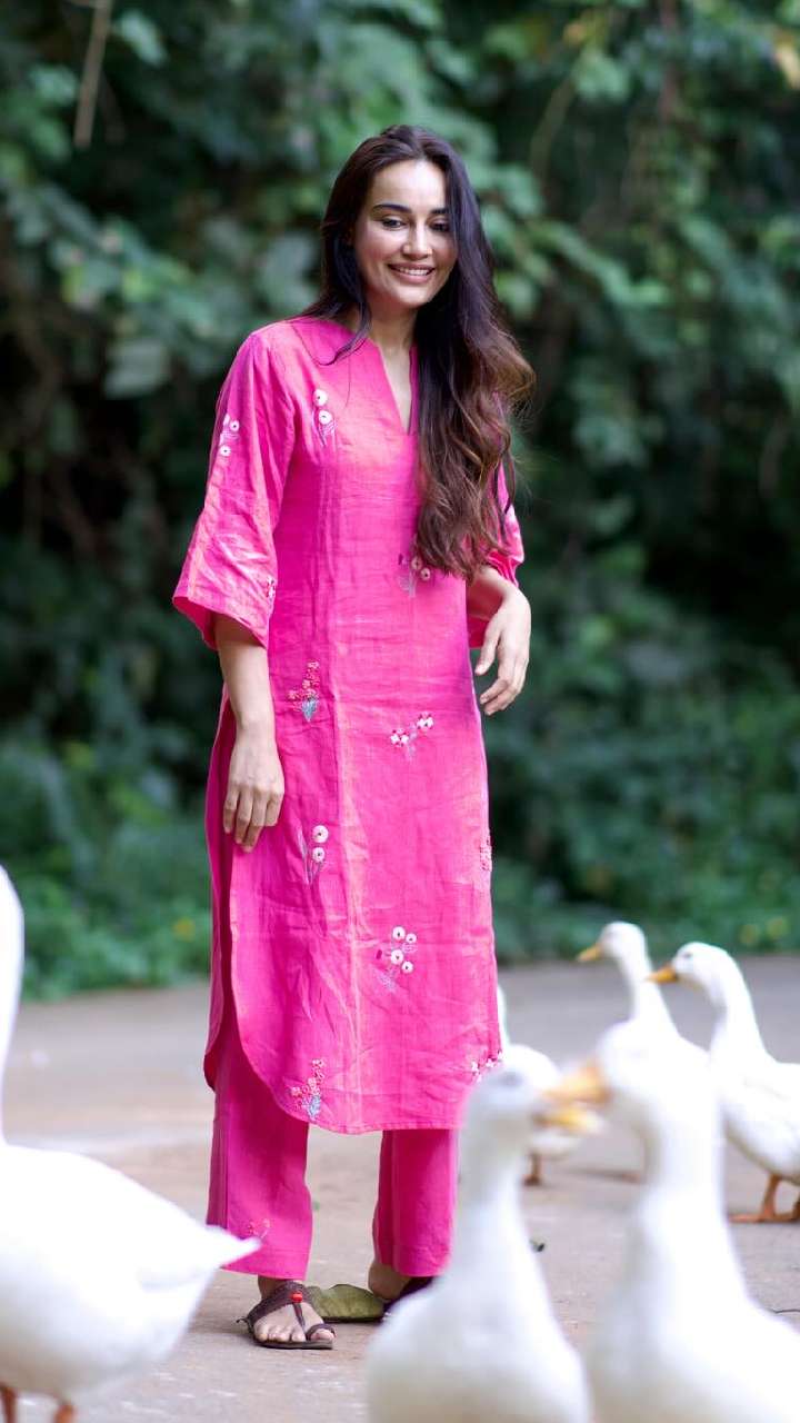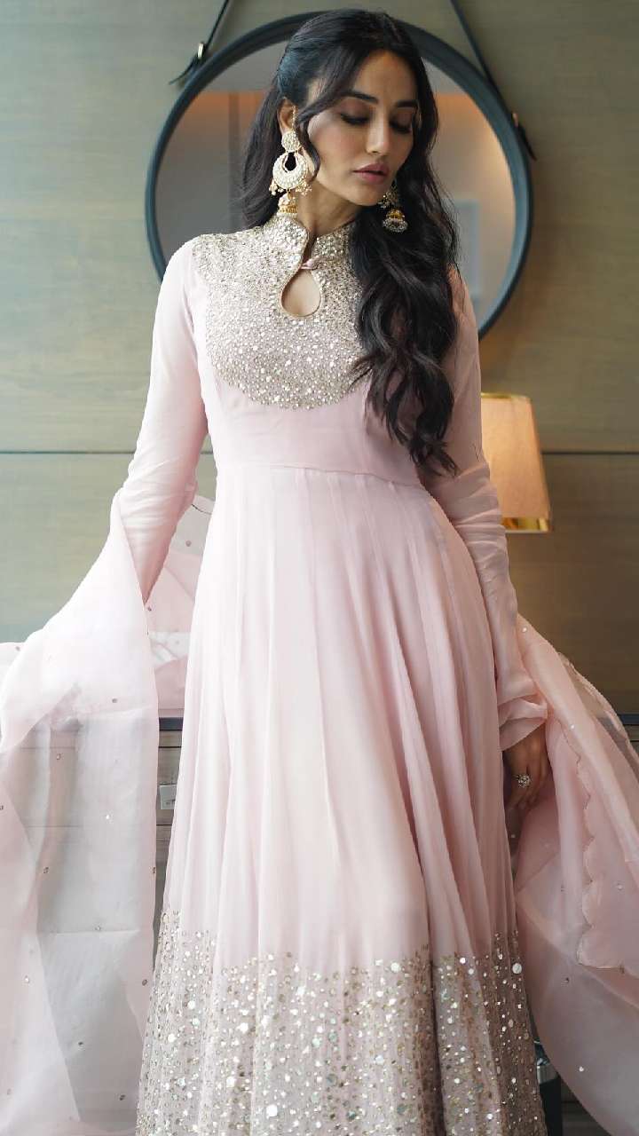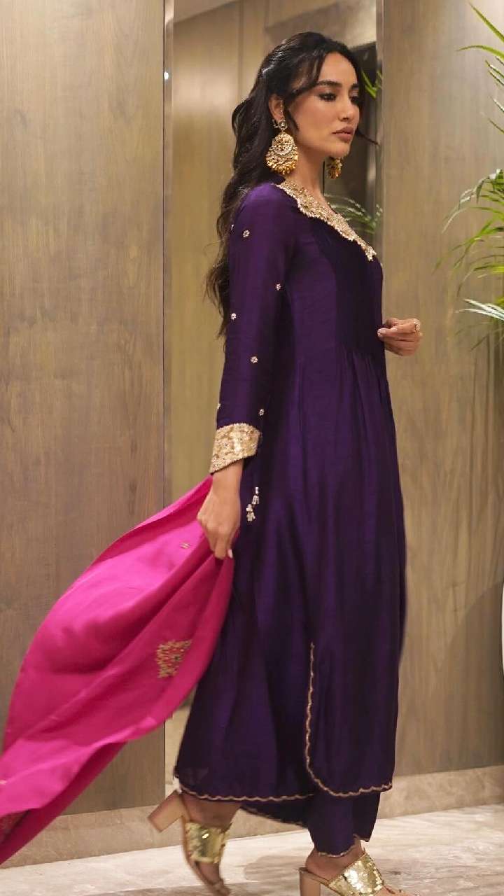 आप इस तरह के स्टोर वर्क सूट को भी इस ईद कैरी कर सकती हैं। एक्ट्रेस का ये पिंक शैड सूट काफी सुंदर लग रहा है।