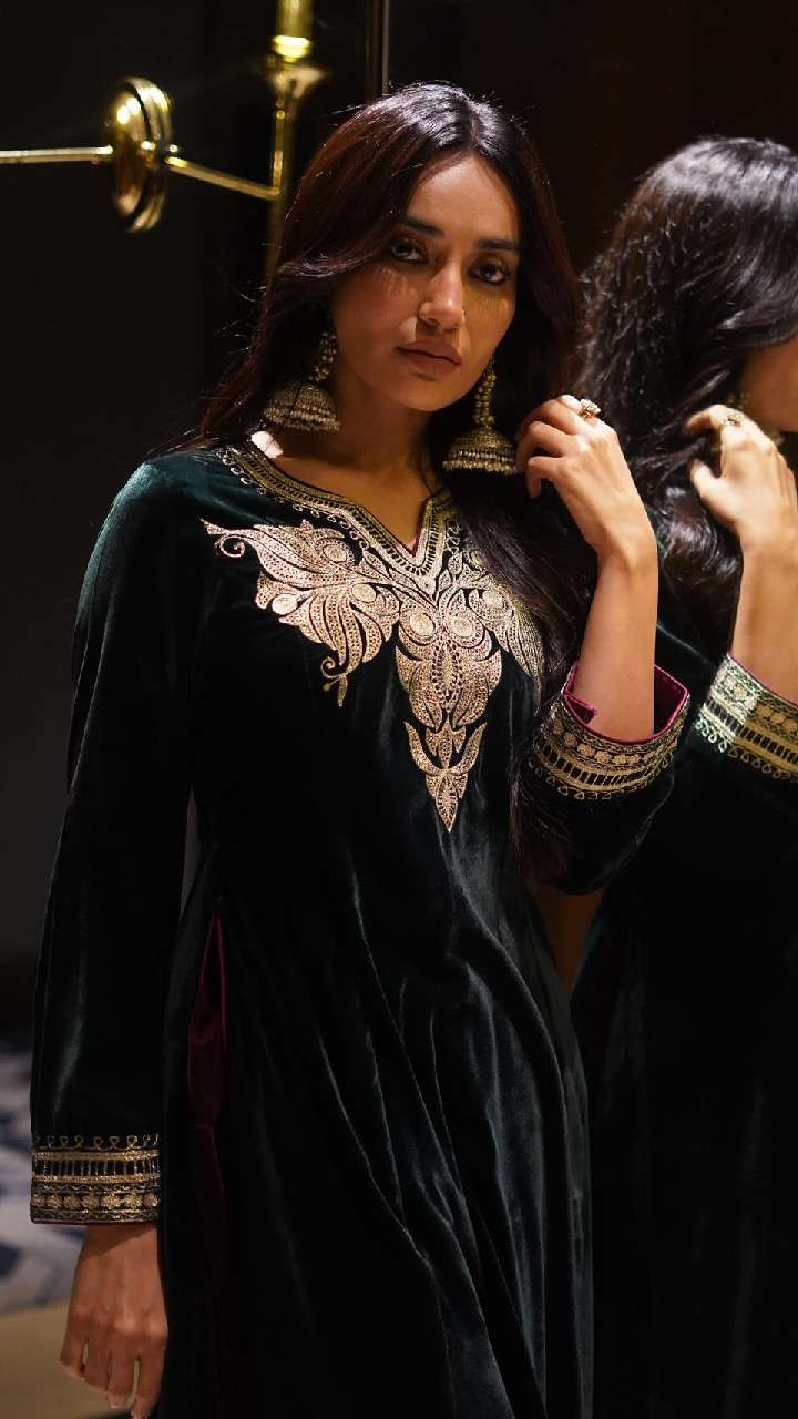 अगर आप लुक को क्लासी और रॉयल बनाना चाहती हैं तो आप सुरभि ज्योति की तरह ही वेलवेट सूट को पहन सकती हैं।