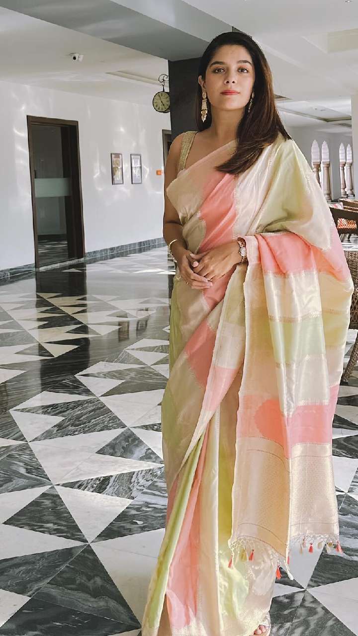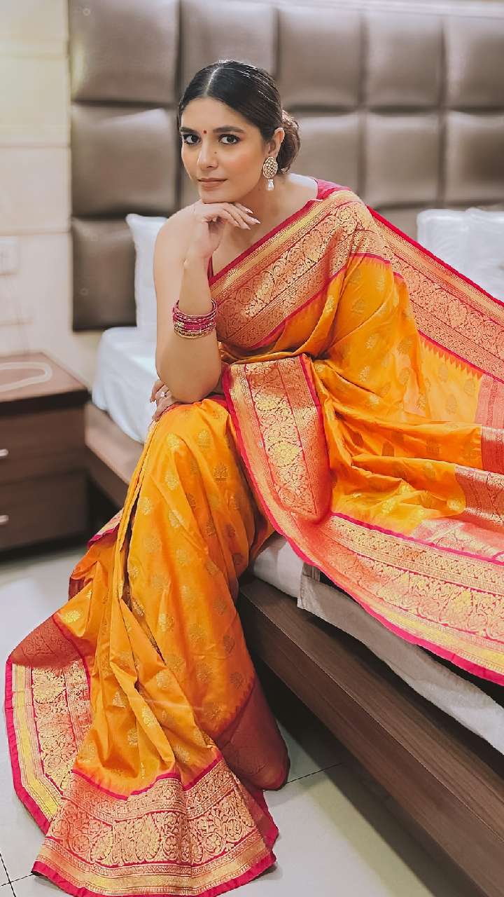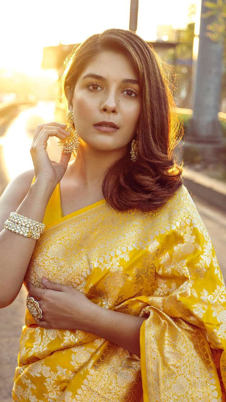 पूजा की इस येलो साड़ी में पूरा जरी वर्क किया हुआ है। जिसमें वो बला की खूबसूरत लग रही हैं। त्योहारों के लिए ऐसी साड़ियां परफेक्ट रहती हैं।