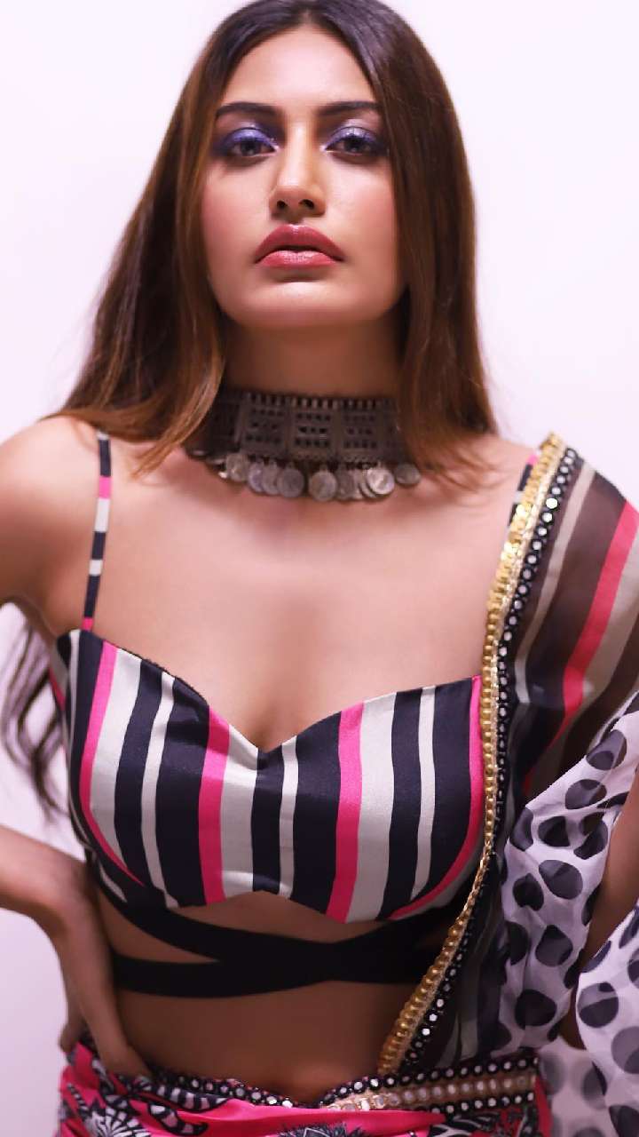 इस गोटा वर्क बिकिनी कट ब्लाउज में सुरभि काफी हॉट नजर आ रही हैं। इस ब्लाउज को आप लहंगे या साड़ी किसी के भी साथ पेयर कर सकती हैं।