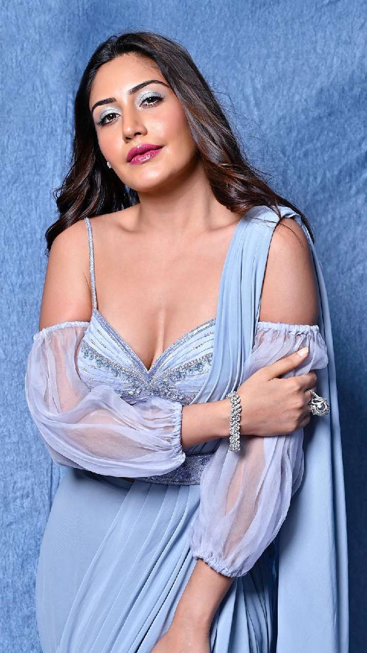 एक्ट्रेस इस नूडल स्ट्रैप ऑफ शोल्डर ब्लाउज में काफी बोल्ड नजर आ रही हैं। सुरभि ने इसे प्लेन साड़ी के साथ पहना है।