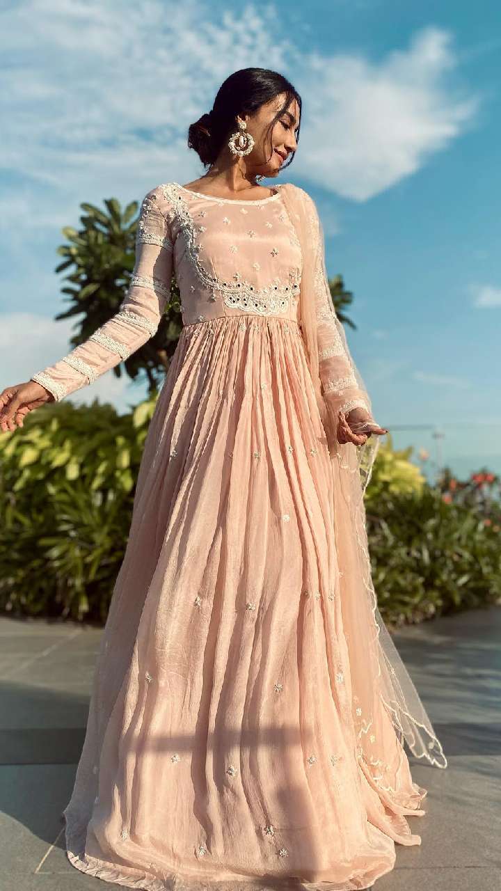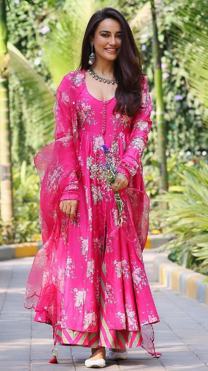 सुरभि इस पिंक कलर के फ्लोरल प्रिंट अनारकली सूट में काफी हुस्न की मल्लिका लग रही हैं।