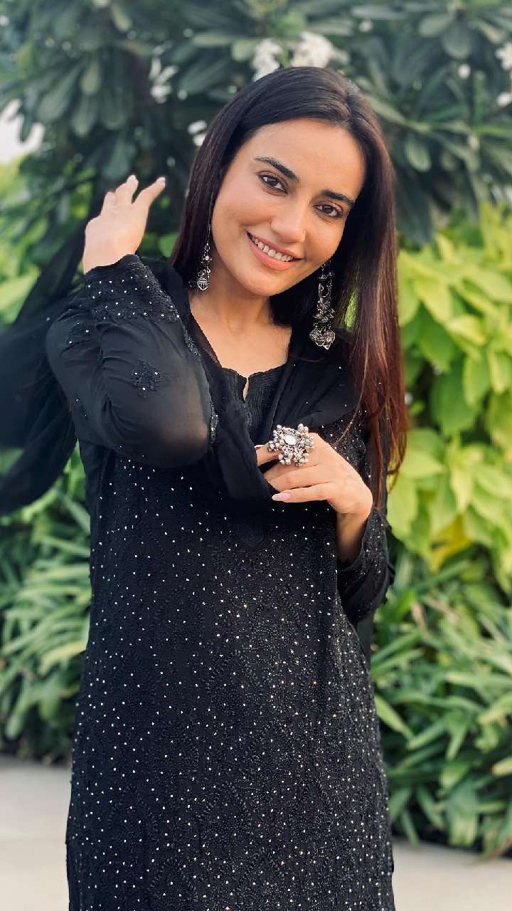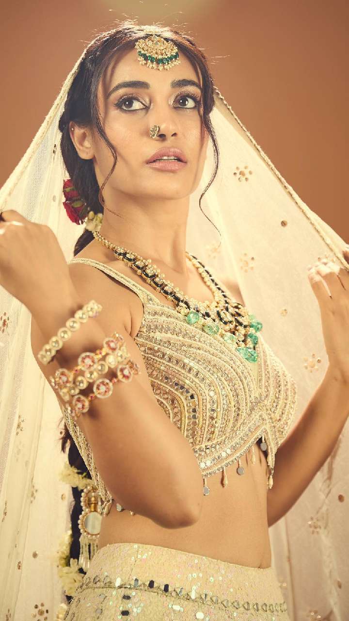 इस लाइट कलर के शिमरी शरारा सूट में सुरभि काफी प्रिटी लग रही हैं। फेस्टिवल पर आप इस लुक को ट्राई कर सकती हैं।