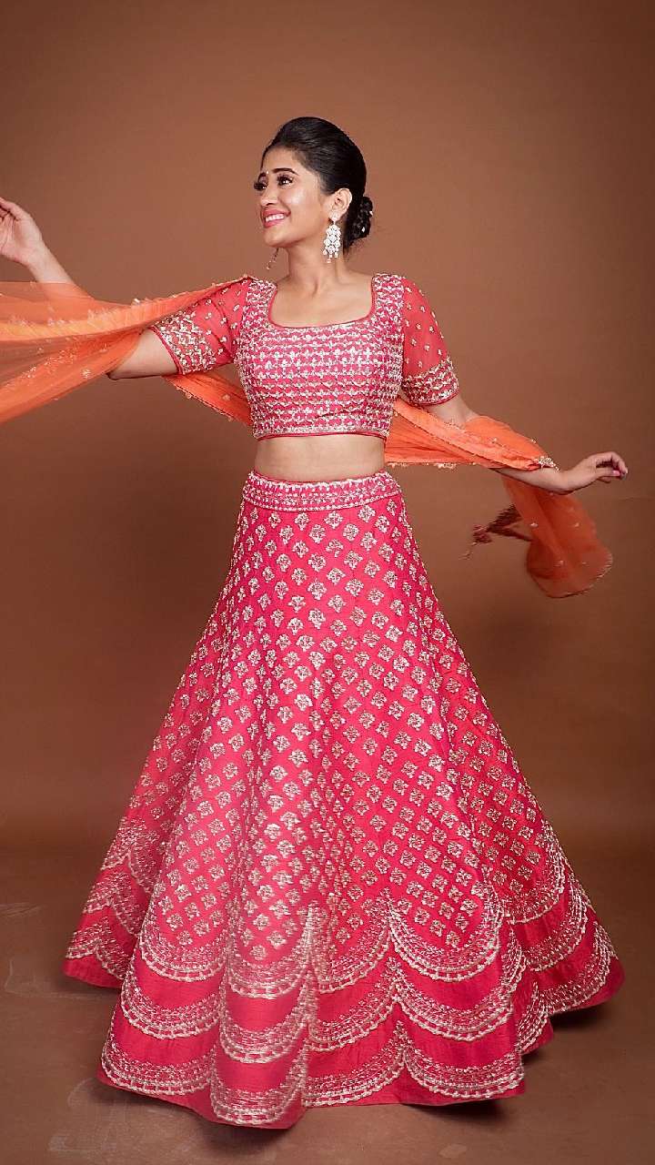 शिवांगी जोशी जिस मल्टी कलर मिरर वर्क लहंगे में आप बला की खूबसूरत नजर आएंगी। इसके साथ लूज ब्रेड फिट फ्रंट फ्लिक्स हेयर स्टाइल सूट कर रही है।