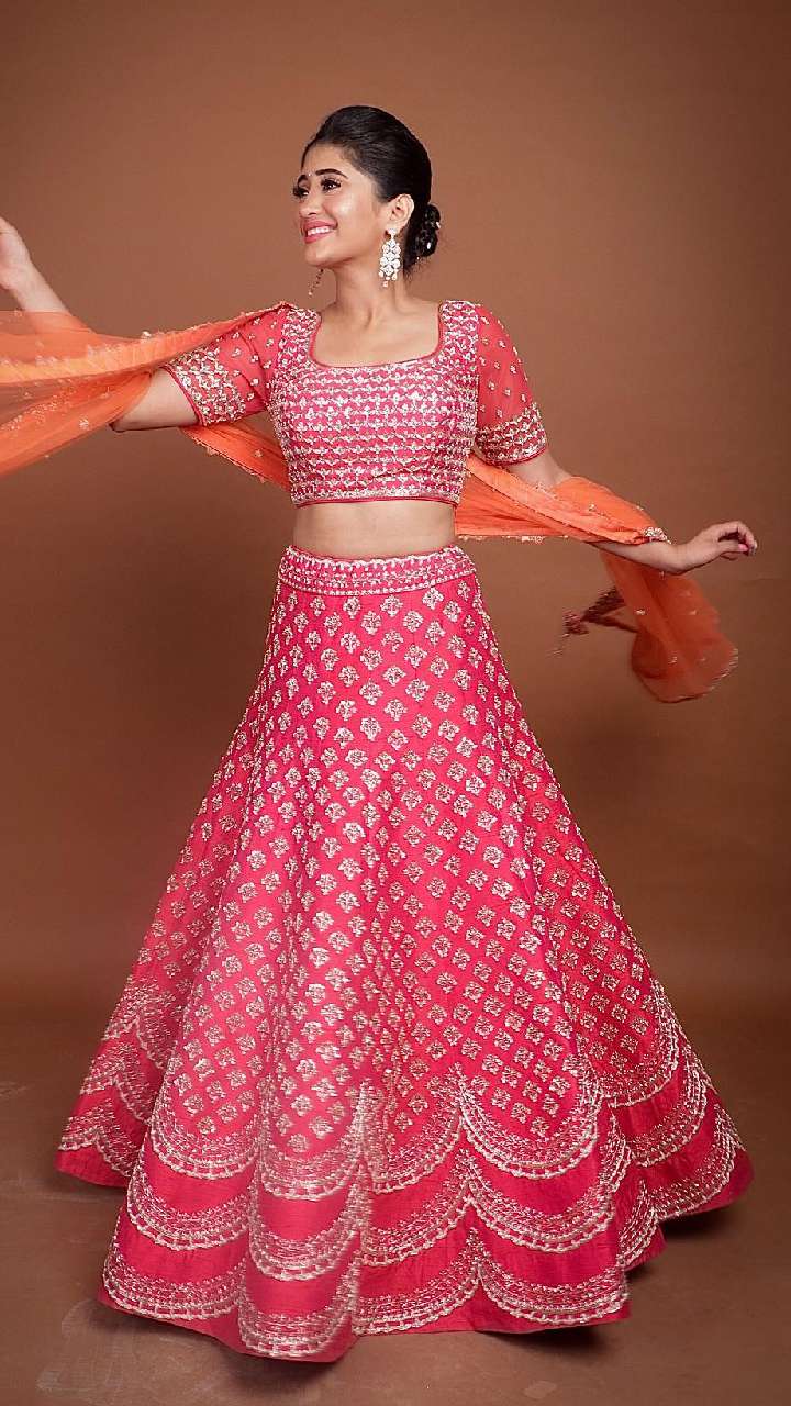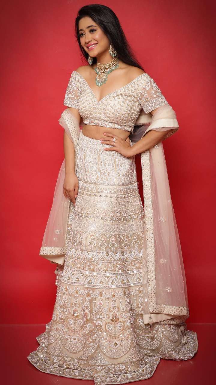 नायरा पिंक कलर के सिल्वर वर्क लहंगे में बला की खूबसूरत लग रही हैं। रिस्पेशन के लिए ये ऑउटफिट बेस्ट रहेंगे।