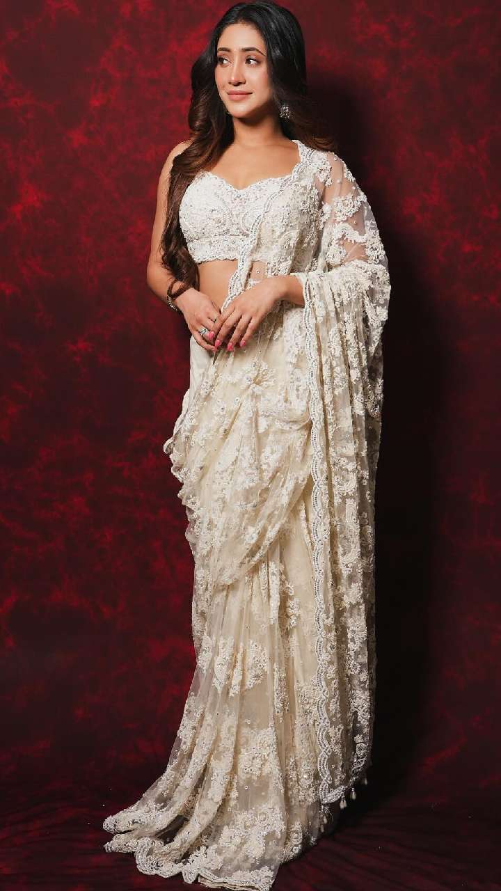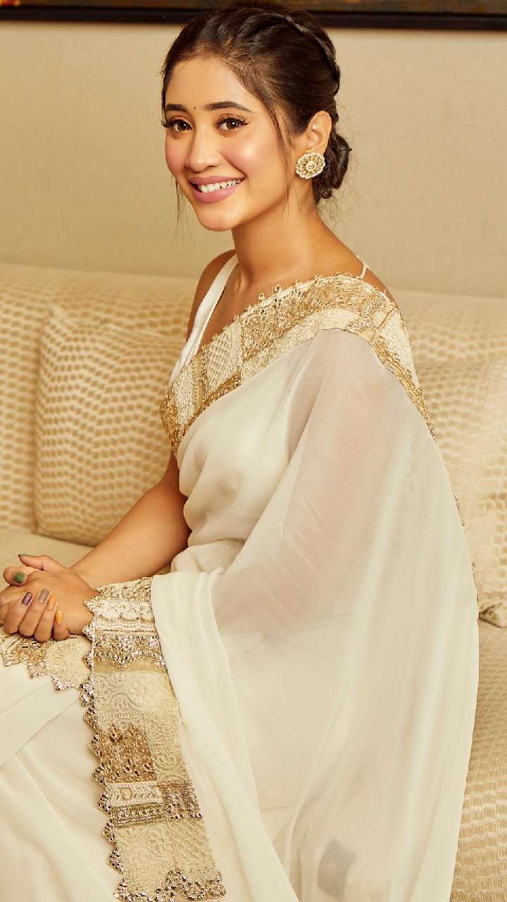 समर सीजन में अगर आपको किसी फंक्शन में जाना है। तो आप शिवांगी की ऑल व्हाइट नेटिड साड़ी ब्रॉड नेक ब्लाउज को स्टाइल कर सकती हैं।