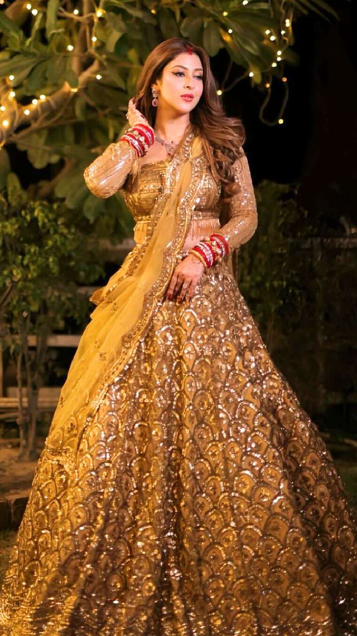 अभिनेत्री इस गोल्डन कलर के सेक्विन लहंगे में बेहद खूबसूरत लग रही हैं। जो कि ईद पर आपकप एकदम चांद सी चमक देगा।