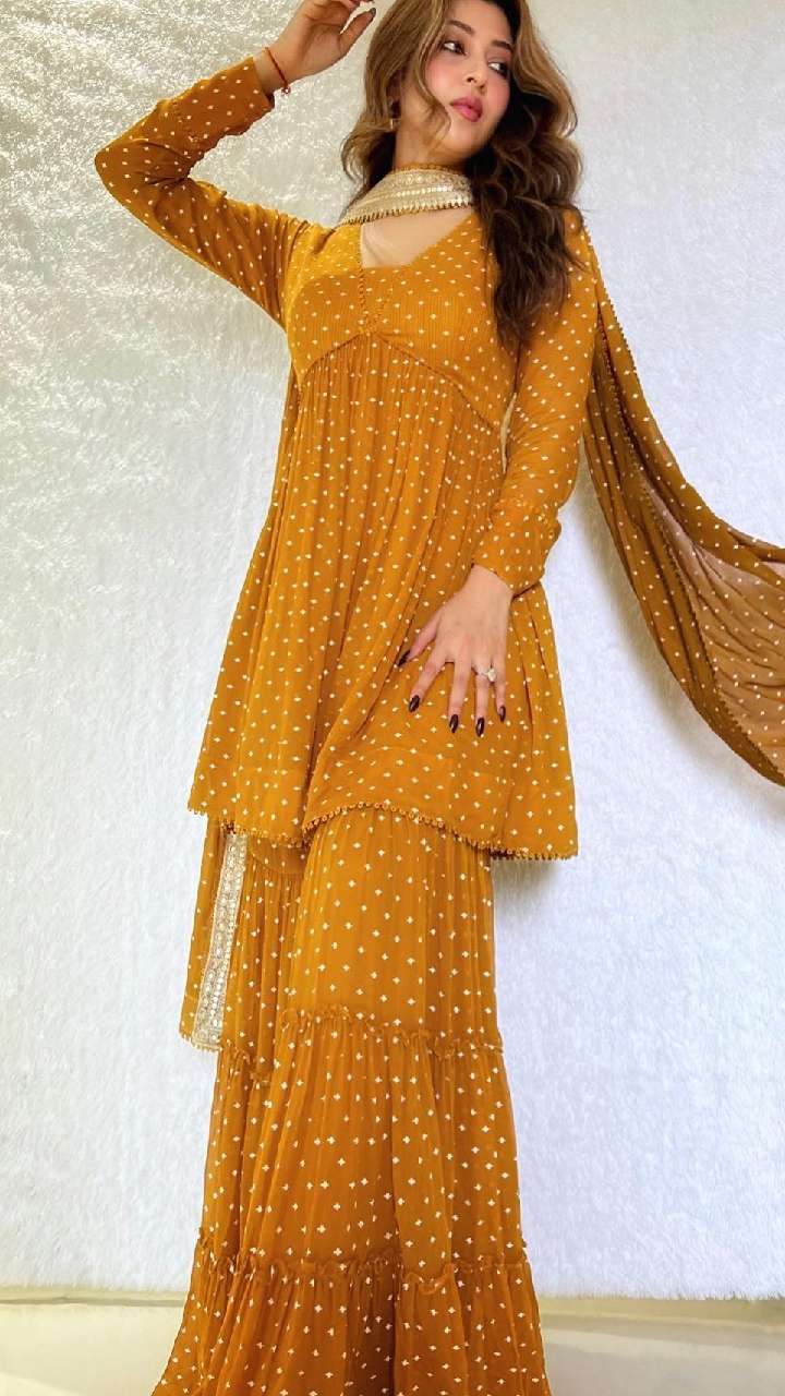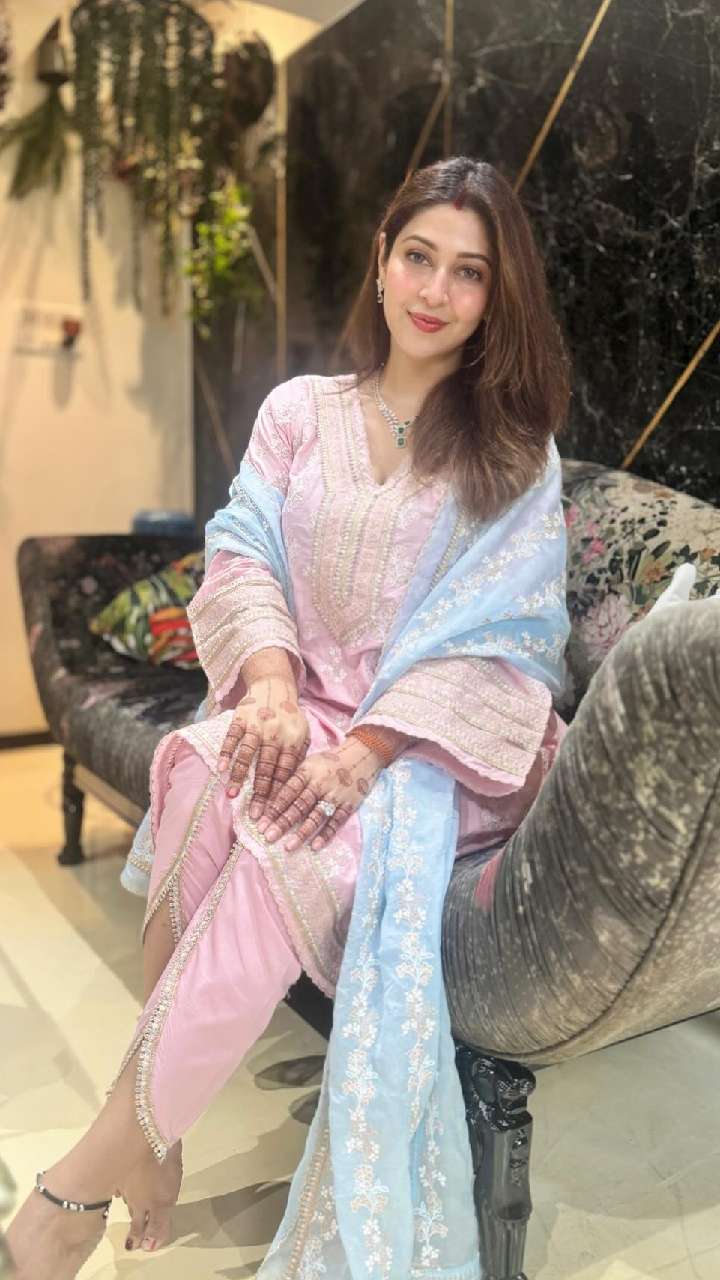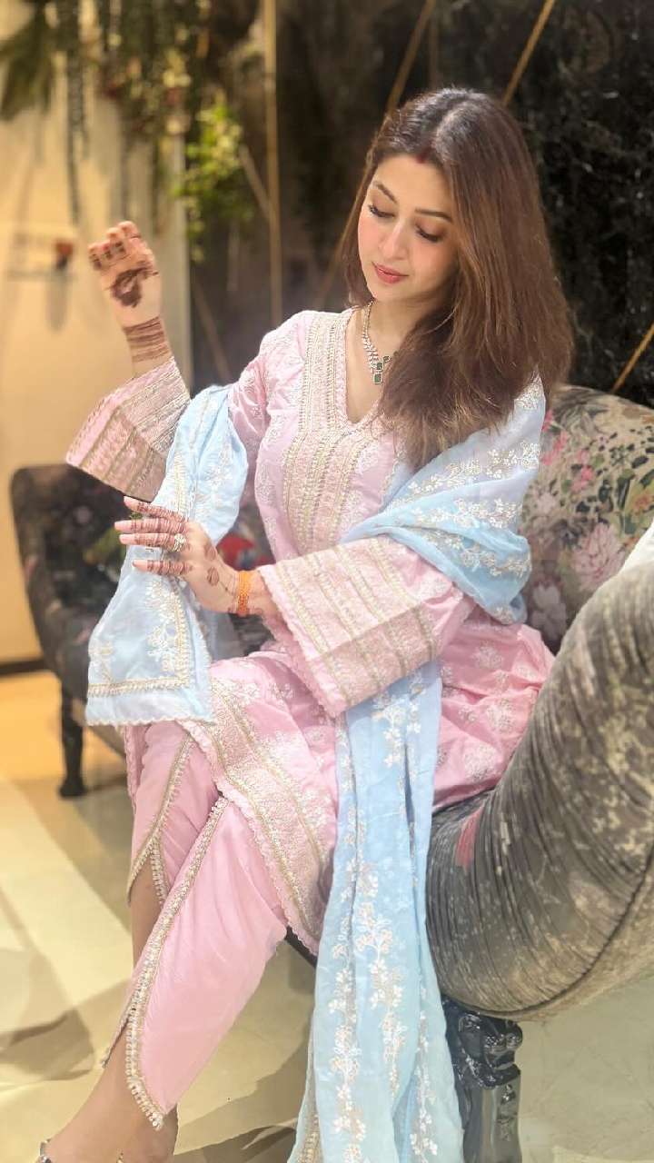 अभिनेत्री ने हाल में स्काई ब्लू और पिंक कलर के अफगानी सूट में अपना लेटेस्ट लुक शेयर किया है। जिसमें वो बला की खूबसूरत लग रही हैं।
