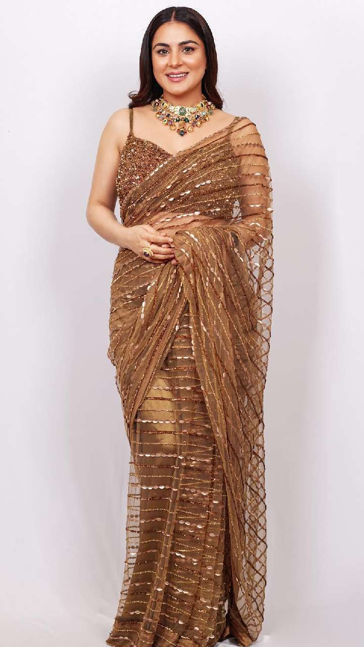 यंग गर्ल्स श्रद्धा आर्या के इस सेक्विन ट्रांसपेरेंट साड़ी नूडल स्ट्रेप ब्लाउज को फॉलो करके खुद को बोल्ड लुक दे सकती हैं।