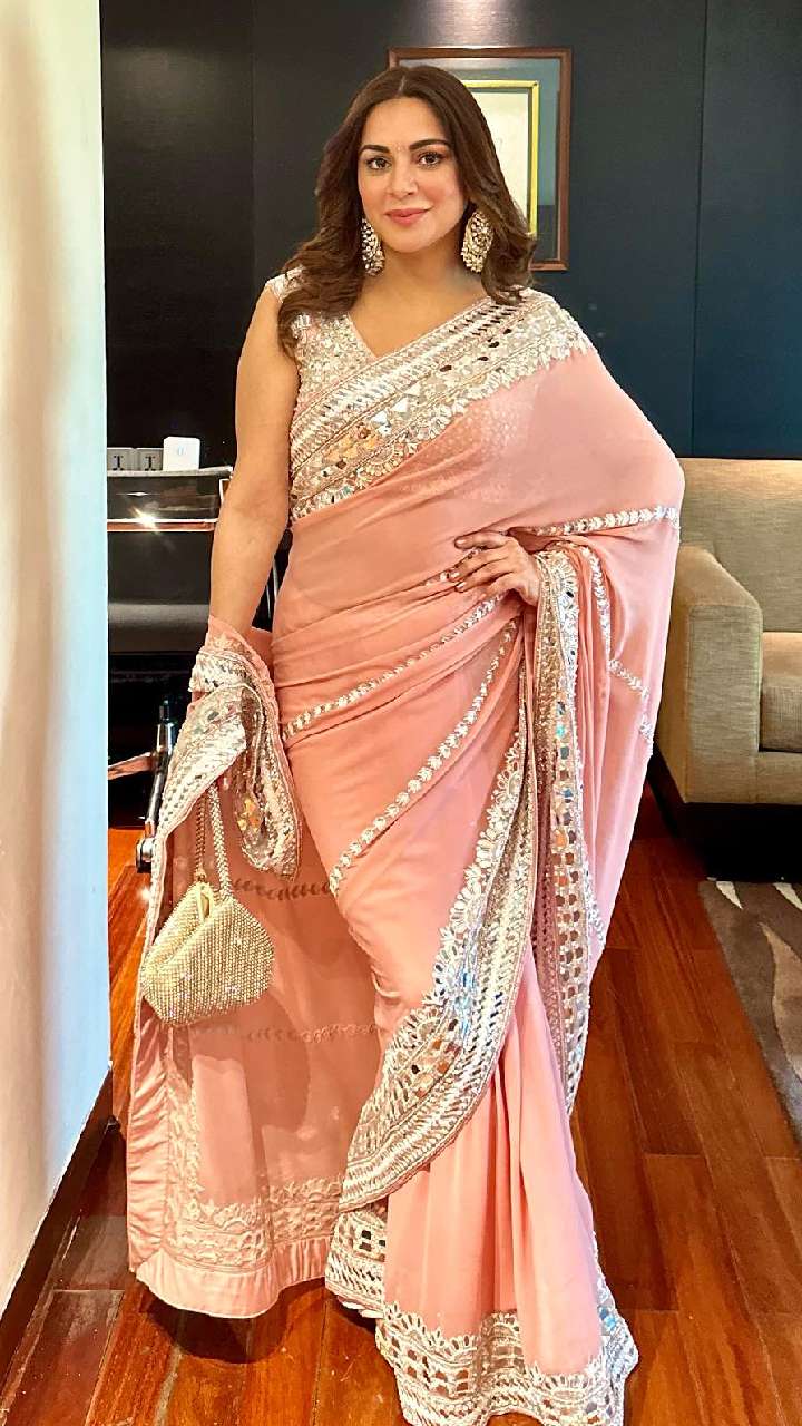 यदि आप खुद को ऑफिस में वीमेंस डे पर एकदम डिफरेंट लुक देना चाहती हैं। तो एक्ट्रेस की मिरर वर्क सिंपल सोबर साड़ी कैरी कर सकती हैं।