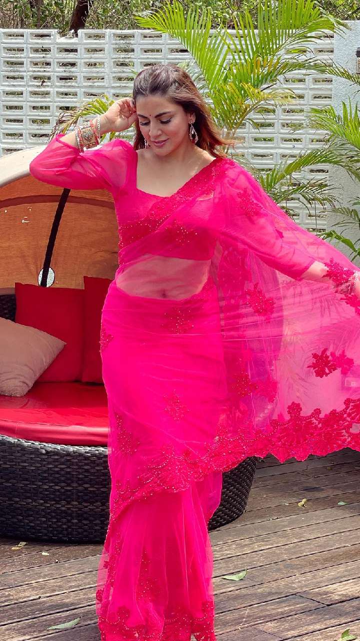 यदि आप ब्लैक लवर हैं तो एक्ट्रेस का ट्रांसपेरेंट ब्लैक साड़ी सिल्वर वर्क लुक आपको बेहद ग्लैमरस लुक देने वाला है।