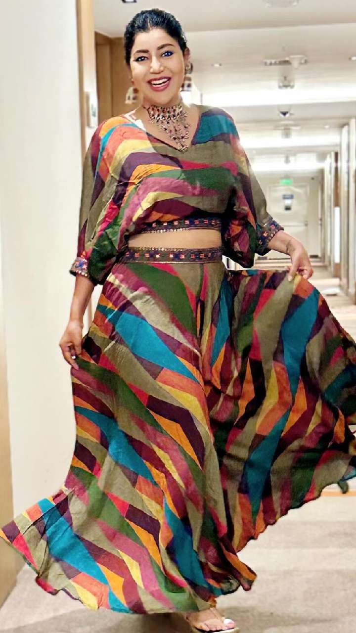 यदि आप फेस्टिवल्स पर कुछ डिफरेंट ट्राई करने का सोच रही हैं, तो इस तरह का प्रिंटेड प्लाजो क्रॉप टॉप या तो रेडीमेड ले सकती हैं। वरना आप इसे बनवा भी सकती हैं।