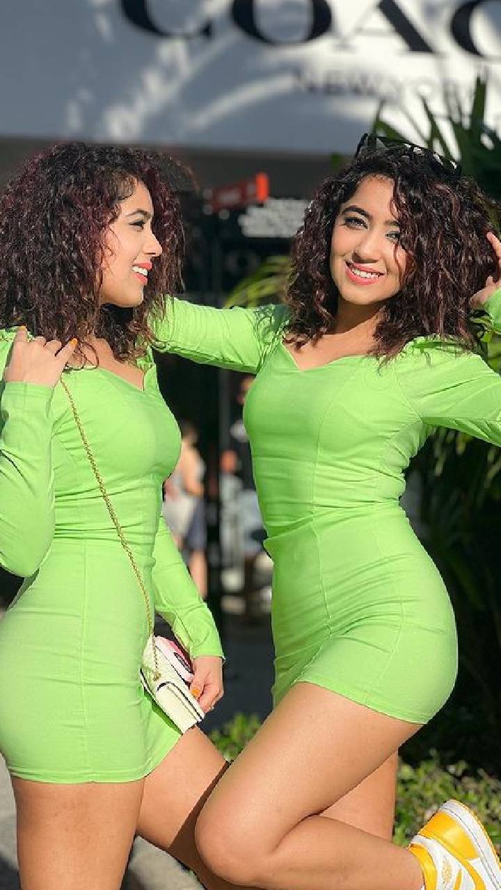ट्विन सिस्टर इस तस्वीर अपने हेयर फ्लॉन्ट कर रही है, एक ने कर्ली हेयर तो वहीं दूसरी बहन ने सिंपल हेयर कैरी किया हैं।