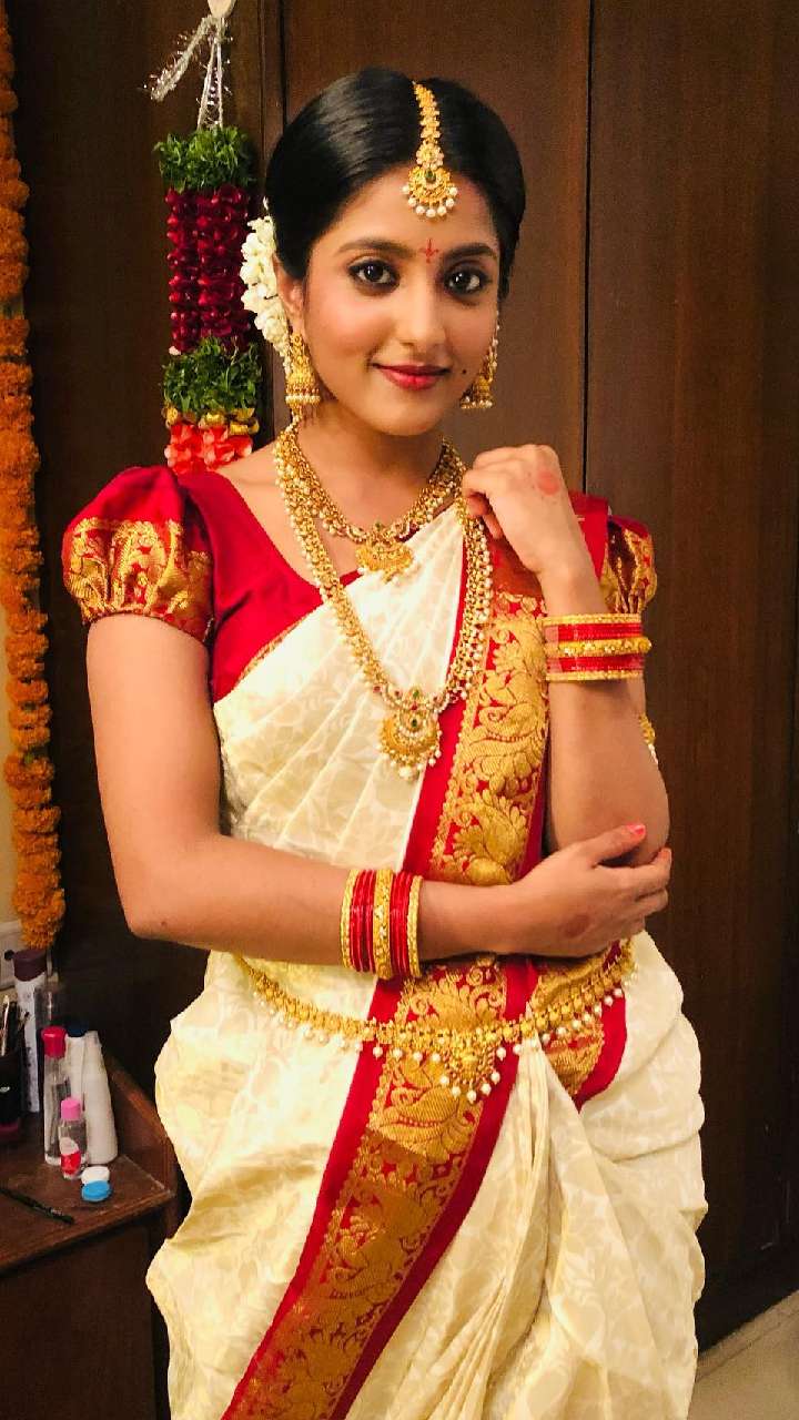 आप इस तरह की व्हाइट रेड साड़ी हैवी ज्वैलरी विद गजरा बन हेयर स्टाइल को कॉपी करके खुद को ट्रेडिशनल लुक दे सकती हैं।
