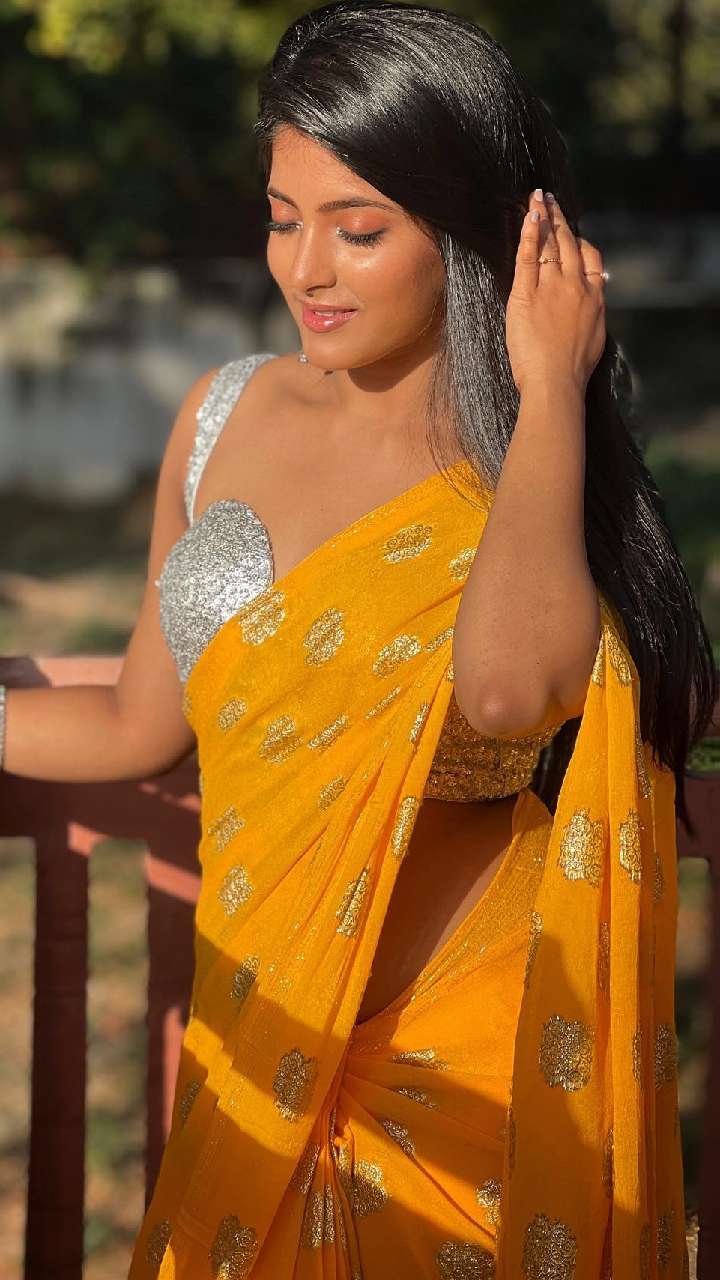 उल्का गुप्ता येलो कलर की शिफॉन साड़ी में कहर ढहा रही हैं। गणेश पूजा के लिए उनका ये लुक शानदार रहेगा।