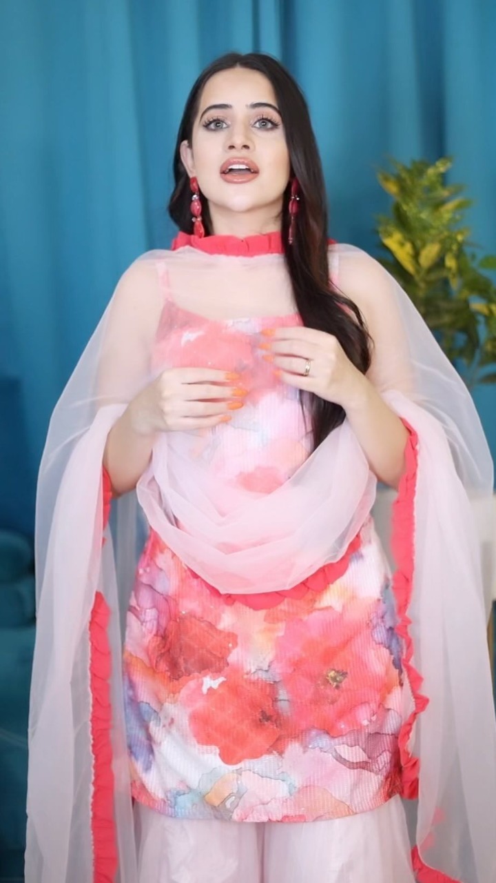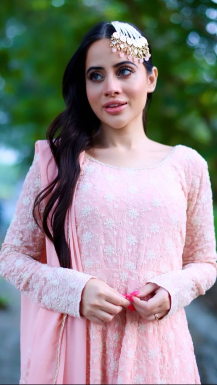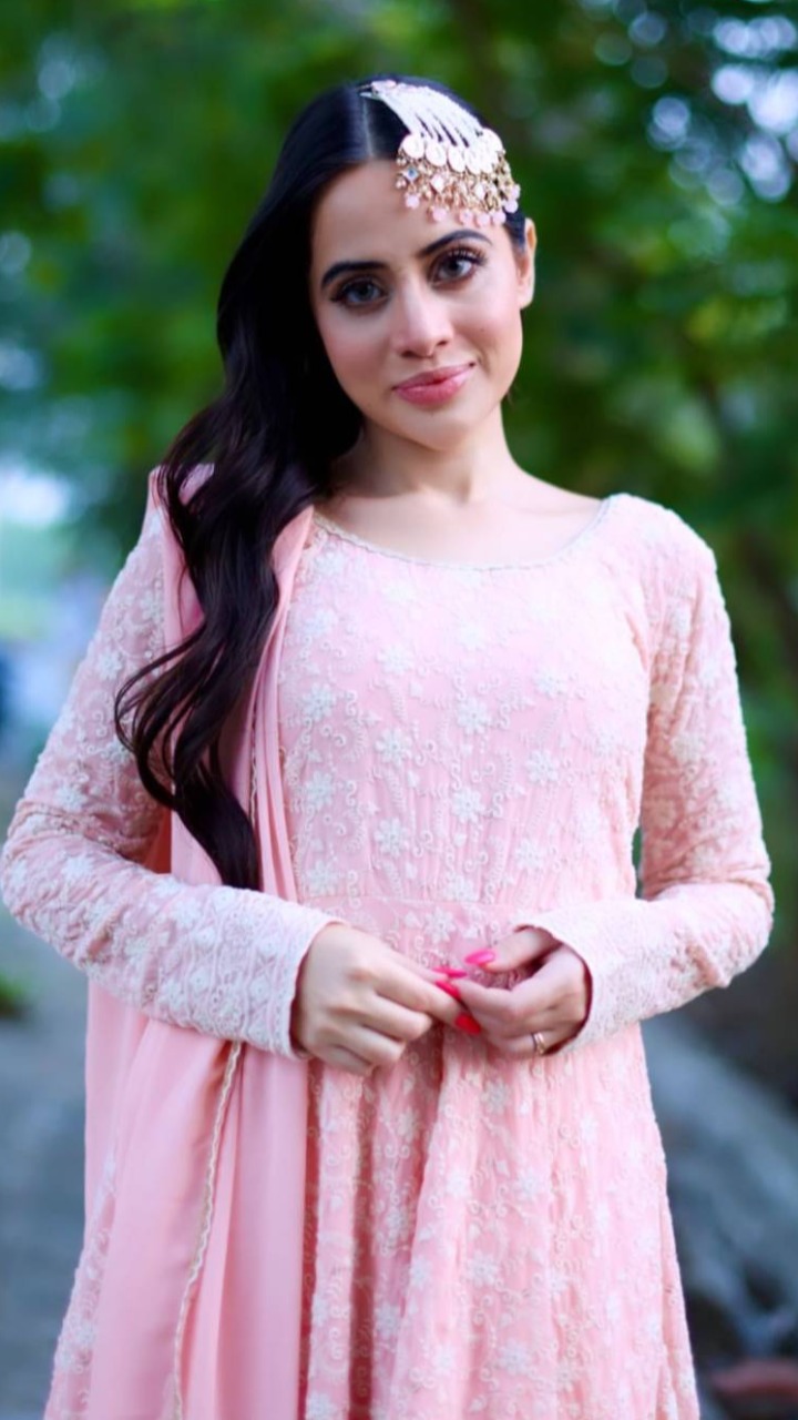 एक्ट्रेस ने तस्वीर में पिंक कलर का फ्लावर एंब्रॉयडर्ड सूट पहना हुआ है। माथे पर झूमर लगाए उर्फी की ये पोस्ट काफी तेजी से वायरल हो रही हैं।