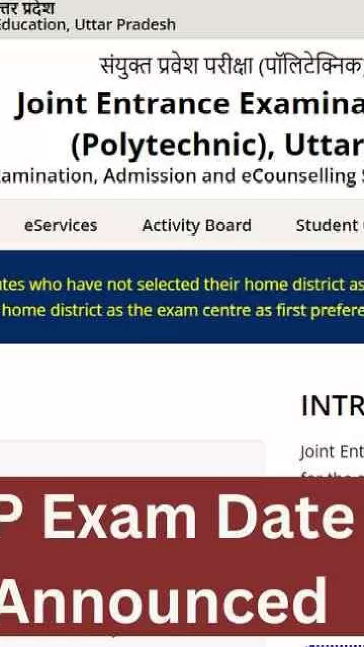 यूपी के पॅालिटेक्निक संस्थानों में प्रवेश के लिए हर साल संयुक्त प्रवेश परीक्षा का आयोजन किया जाता है। प्रवेश परीक्षा के लिए तिथियों की घोषणा कर दी गई है।