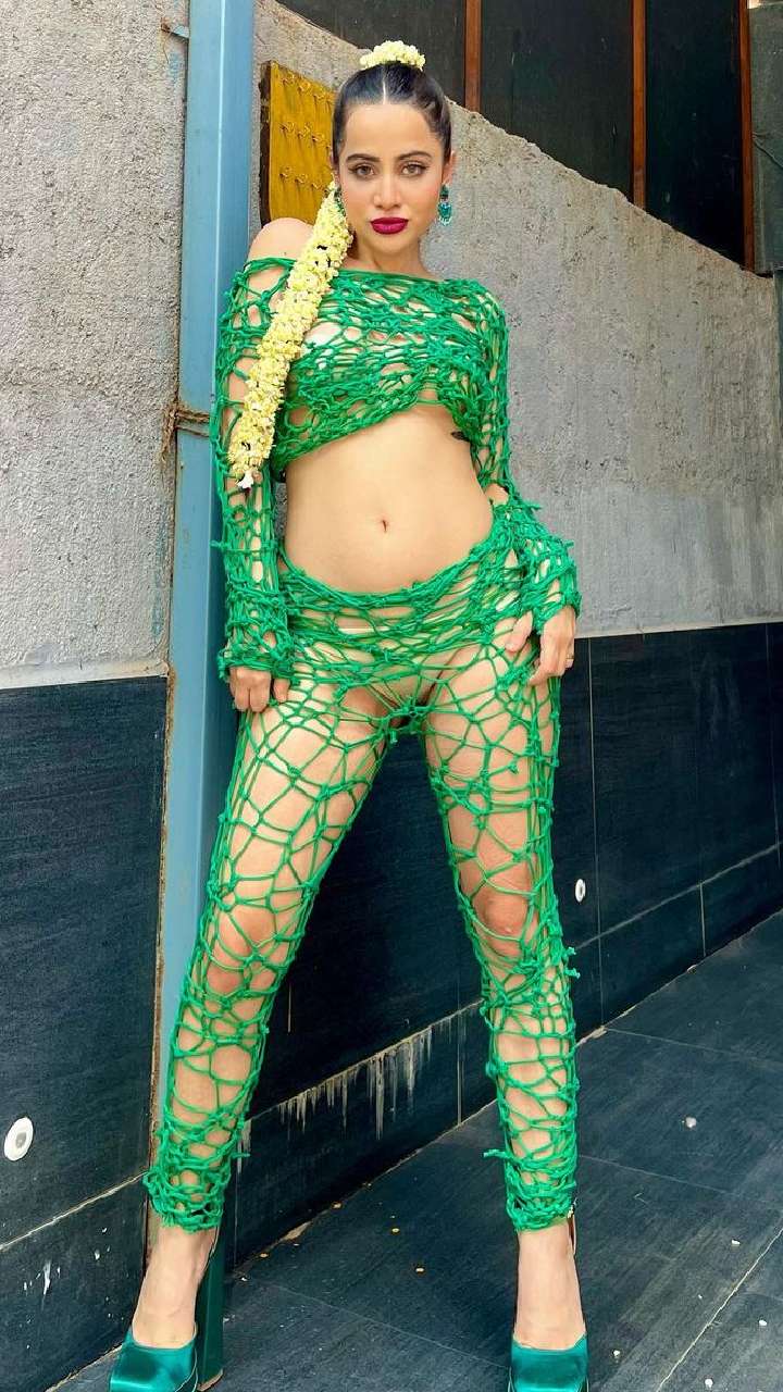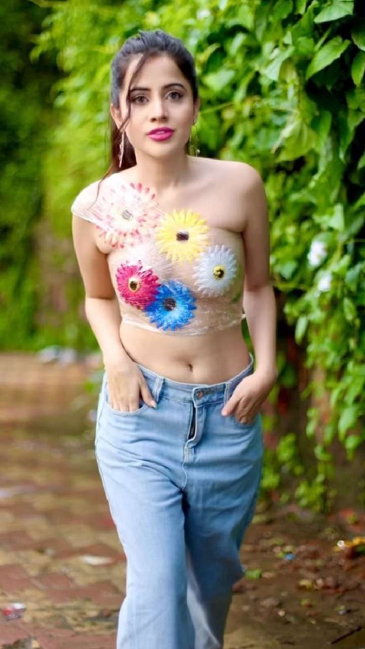 उर्फी फूलों से भी अपना बदन ढक चुकी हैं। जो काफी यूनिक और ब्यूटीफुल लुक दे रहा है।