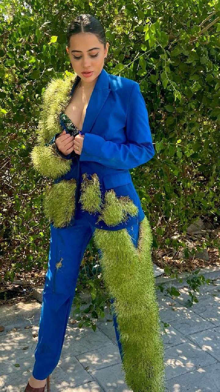 उर्फी ने घास से भी अपनी ड्रेस को काफी अट्रैक्टिव लुक दिया था।