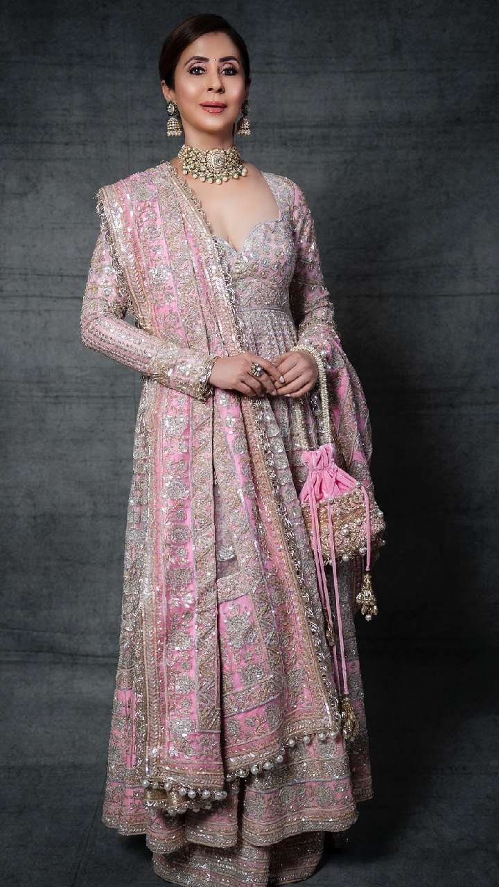 इन दिनों अनारकली सूट खूब ट्रेंड में है। ऐसे सूट हर मौके पर लुक को खास बना देता है। पिंक कलर के हैवी वर्क अनारकली सूट में एक्ट्रेस रॉयल और क्लासी लग रही है।