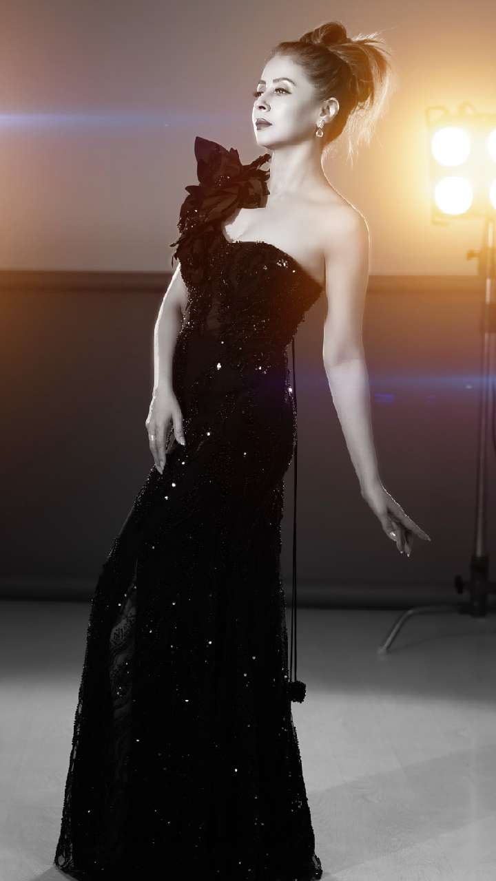 50 की उम्र में आप भी कर्वी फिगर फ्लॉन्ट करना चाहती हैं, तो एक्ट्रेस की तरह शिमरी वन शोल्डर गाउन को ट्राई करें। ऐसी ड्रेस पार्टी में एकदम परफेक्ट लुक देती हैं।