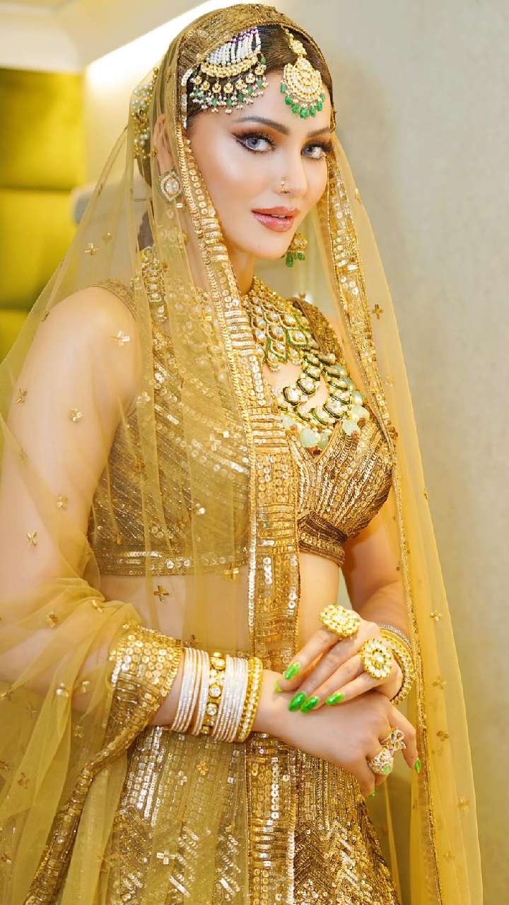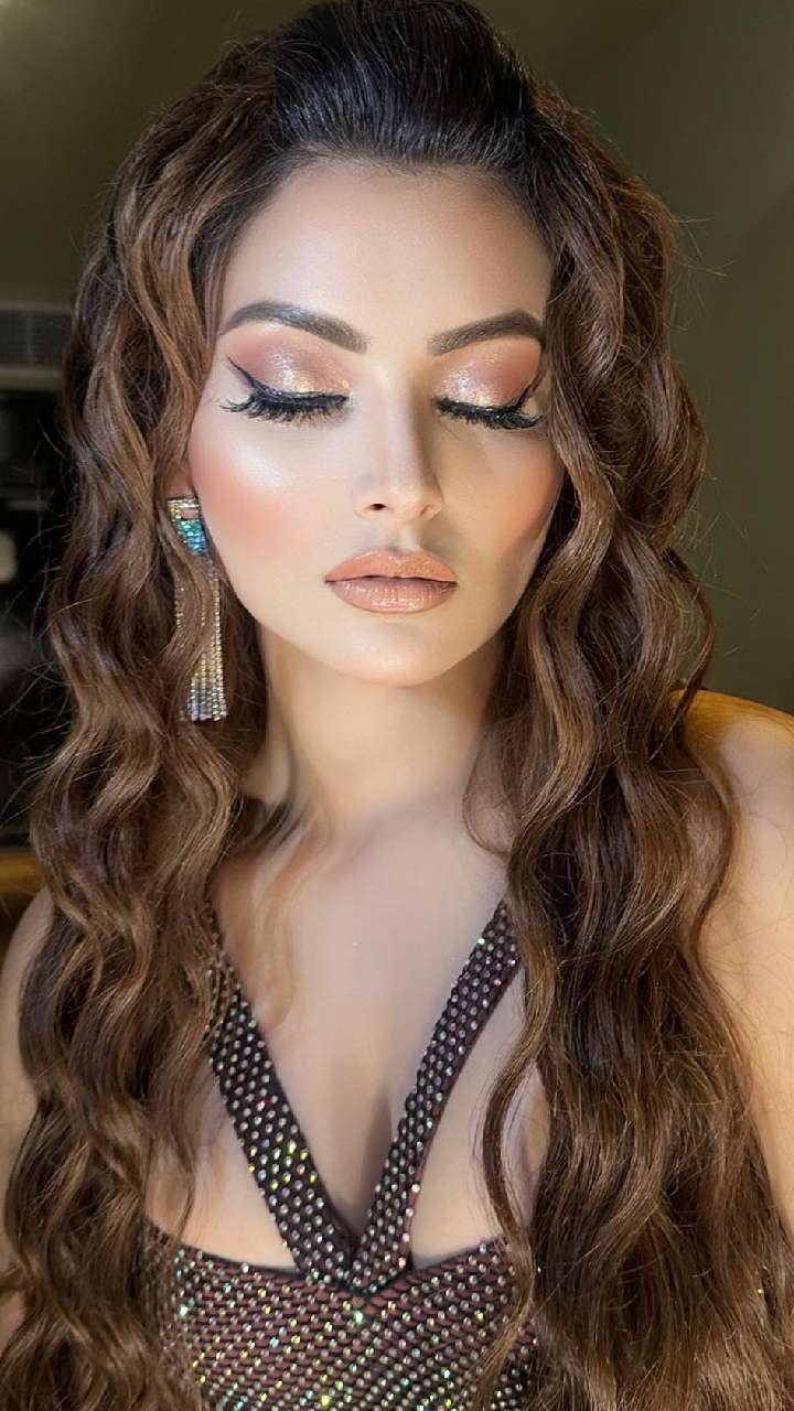उर्वशी ने हाल में इंस्टाग्राम पर गोल्डन ऑउटफिट में अपना ग्लॉसी मेकअप लुक शेयर किया है। जिसमें डीवा बला की खूबसूरत लग रही हैं।