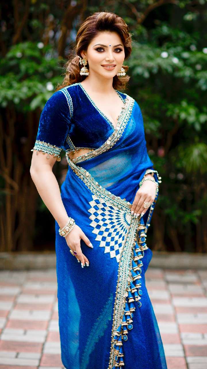 अगर आप डिफरेंट लुक कैरी करना चाहती हैं तो आप उर्वशी रौतेला की तरह ही क्रैप ब्लाउज डिजाइन को भी स्टाइल कर सकती हैं।