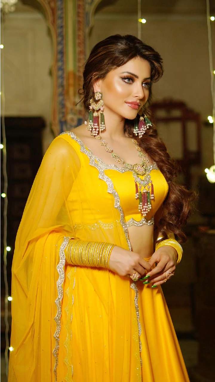 उर्वशी इस ब्लू कलर के हैवी वर्क रफल गाउन में बेहद खूबसूरत लग रही हैं। यंग गर्ल्स ईद पर इसे भी ट्राई कर सकती हैं।
