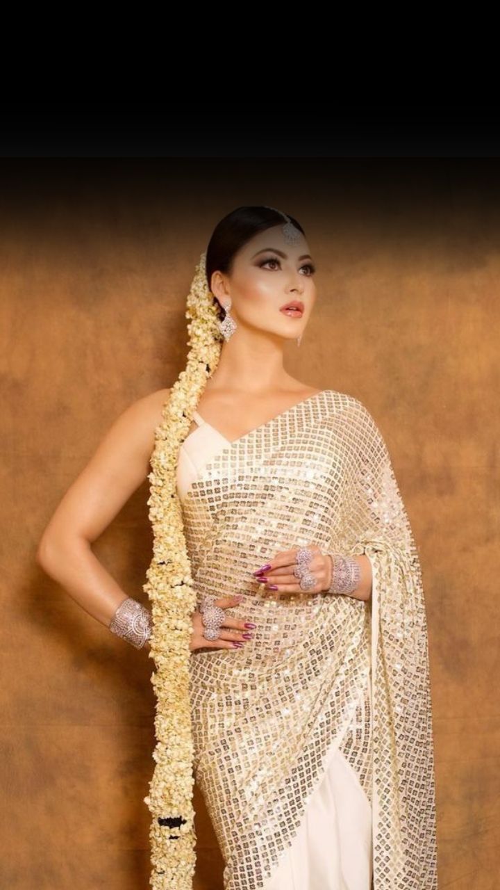 उर्वशी की साड़ी में ये तस्वीर बेहद खूबसूरत लग रही है, फैंस उनके इस लुक के दीवाने हो रहे हैं।