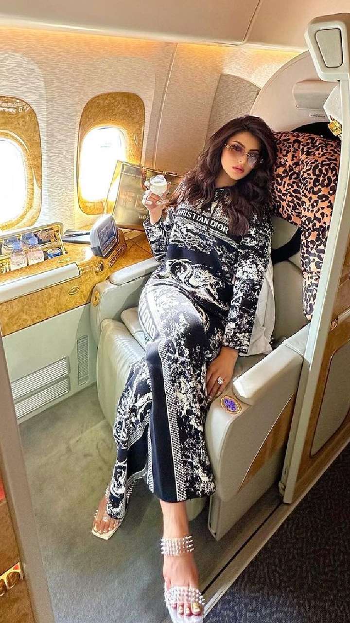 तस्वीर में मिस डीवा का ठाट बाट देखते ही बन रहा हैं। फोटो में एयर होस्टेस एक्ट्रेस को चाय सर्व करती नजर आ रही है।