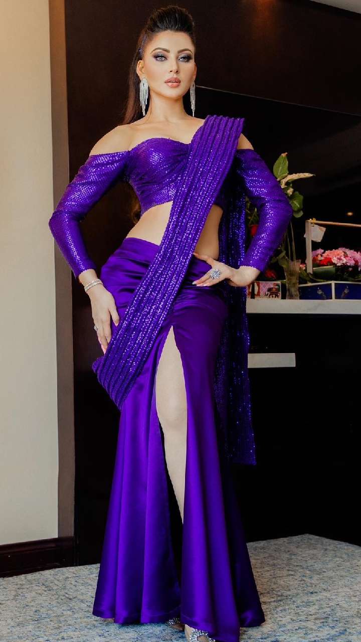 ब्लैक कलर की सेक्विन साड़ी लुक में भी उर्वशी काफी ज्यादा हॉट लग रहीं हैं। साथ ही एक्ट्रेस का ये लुक यंग गर्ल्स पर खूब जचेगा।