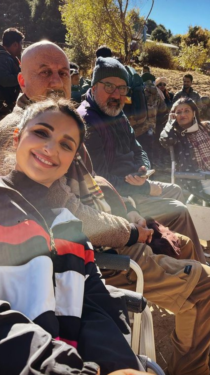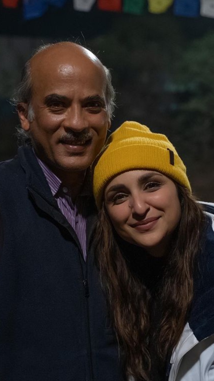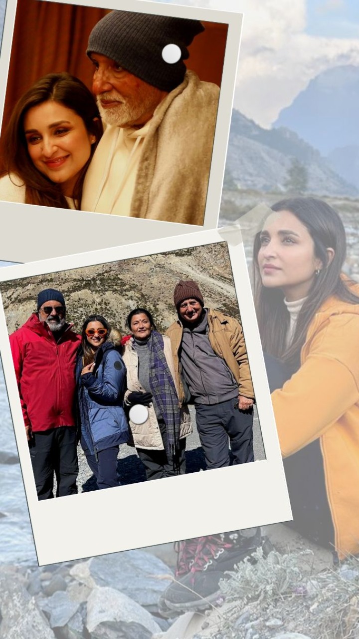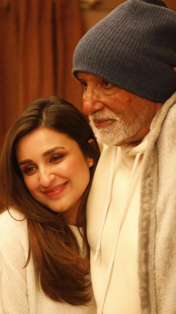 एक्ट्रेस परिणीति चोपड़ा ने अमिताभ बच्चन के साथ ये प्यारी फोटो शेयर की हैं, जो फिल्म ऊंचाई के सेट की है।