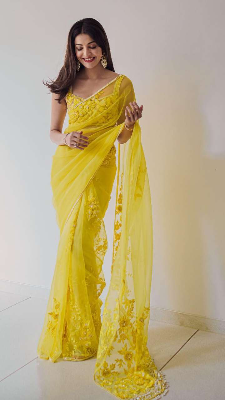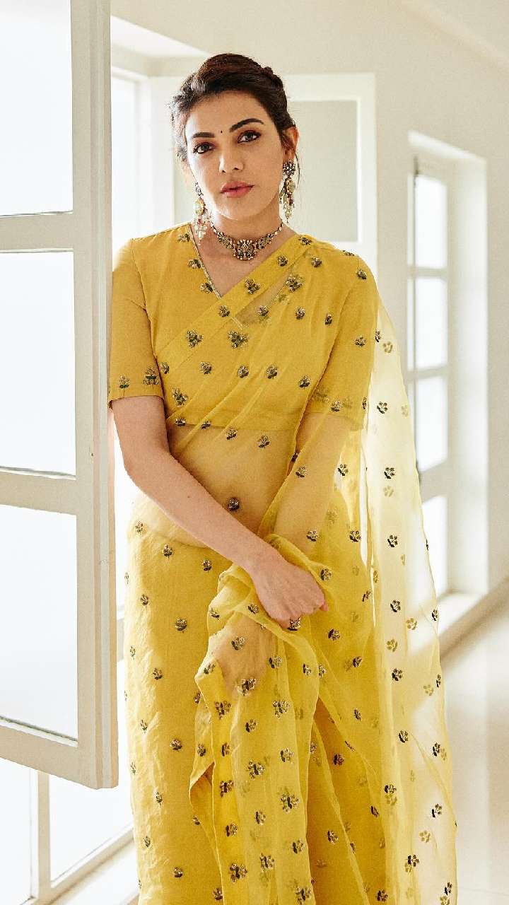 काजल अग्रवाल सोशल मीडिया पर काफी ज्यादा एक्टिव रहती हैं। एक्ट्रेस ने हाल ही में येलो साड़ी में अपना लुक शेयर किया।