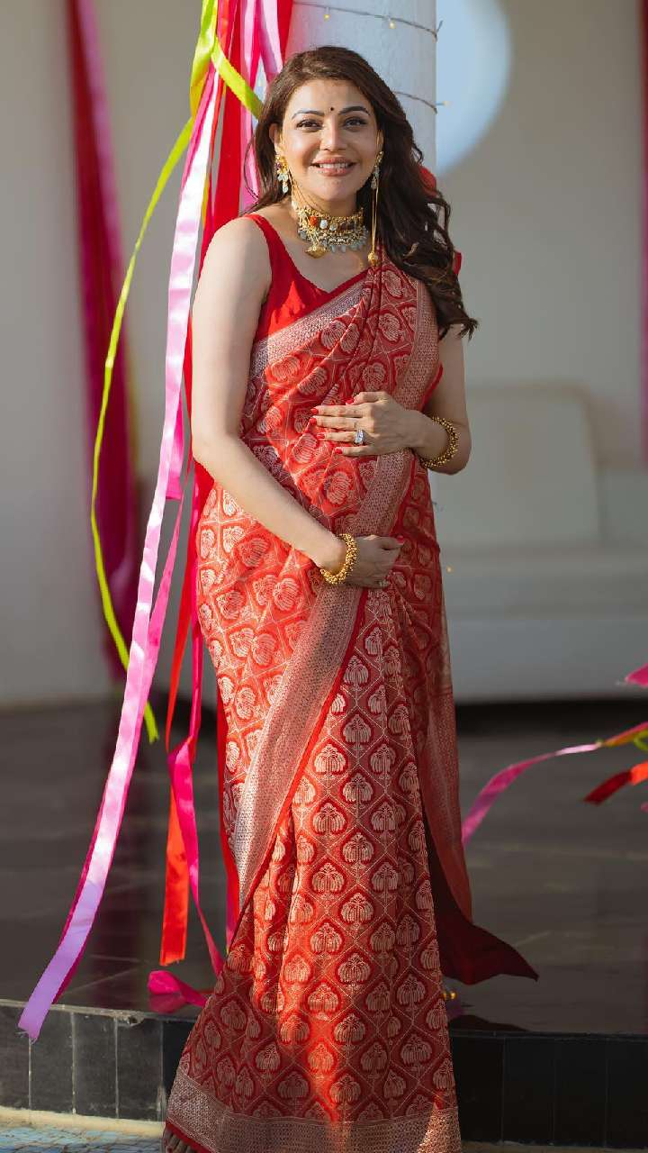 अगर आप अपने लुक को रॉयल बनाना चाहती हैं तो आप भी काजल अग्रवाल की तरह ही सिल्क साड़ी को कैरी कर सकती हैं।