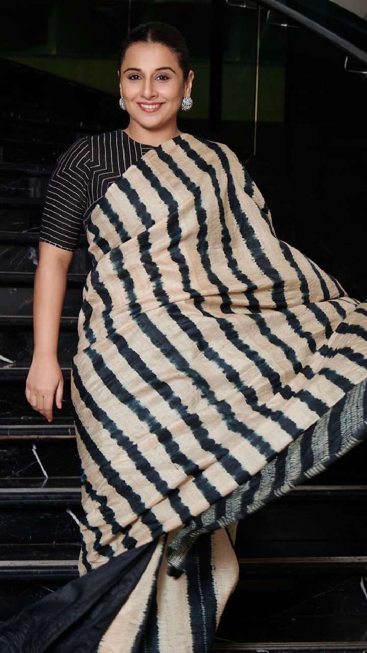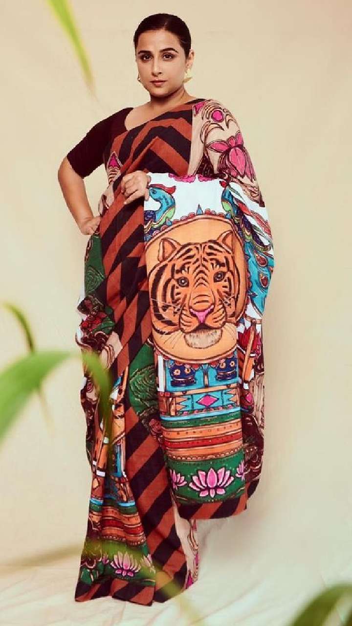 सिंपल साड़ी को भी स्टाइलिश तरीके से कैरी करके खुद को स्टाइलिंग लुक देना कोई विद्या से सीखे। इस प्रिंटेड साड़ी को एक्ट्रेस ने बोट नेक ब्लाउज से पेयर किया है।