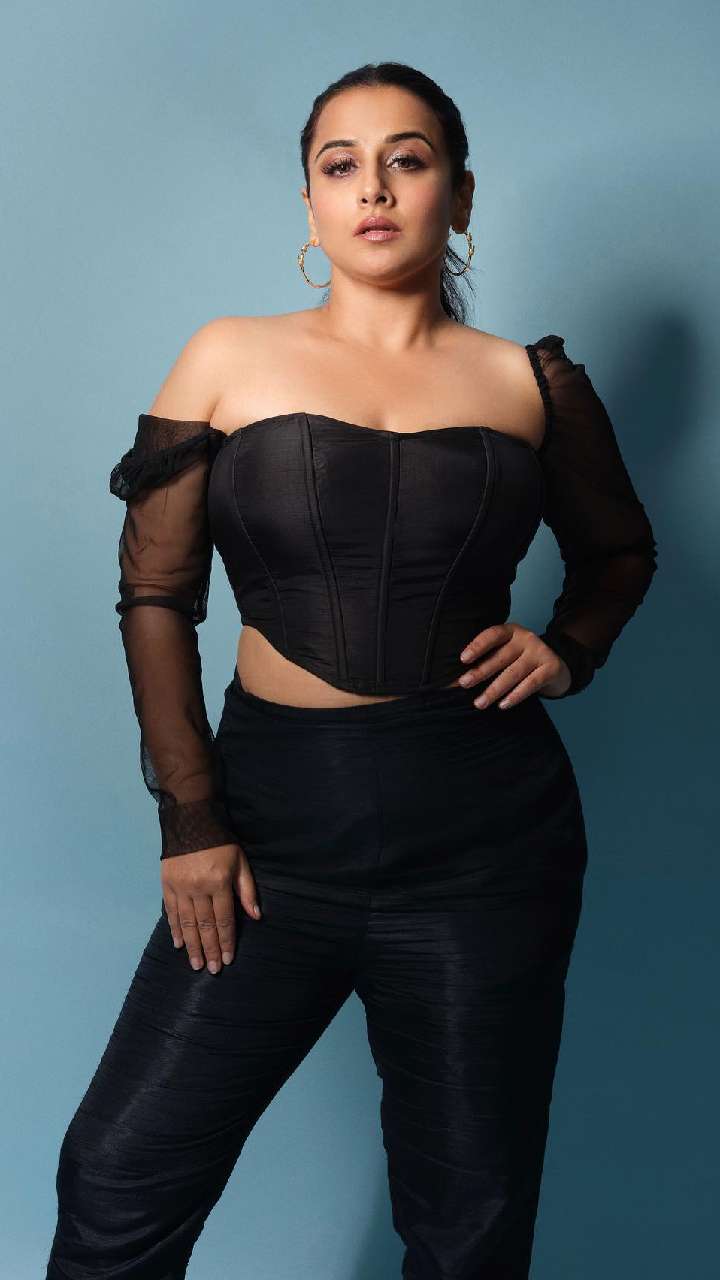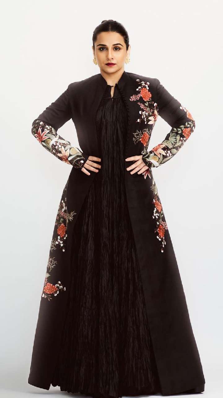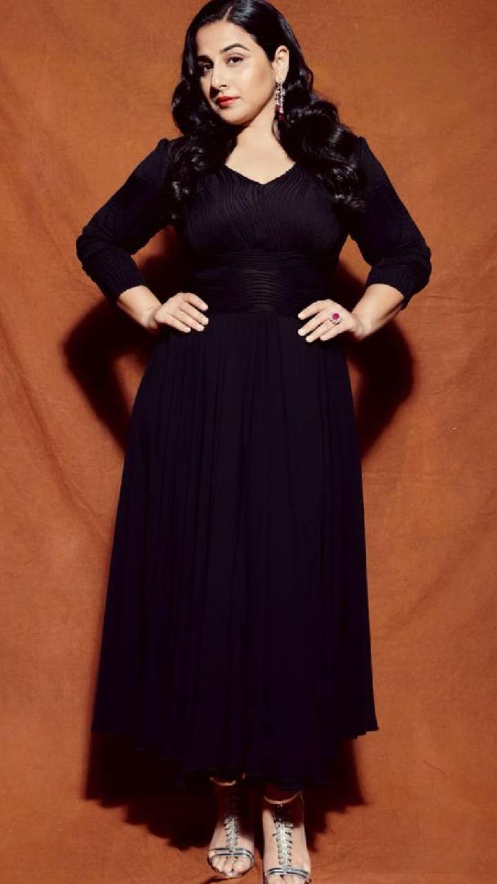 इस ब्लैक कलर के सेक्विन गाउन डीपनैक गाउन में विद्या अपना परफेक्ट फिगर फ्लॉन्ट करती नजर आ रही हैं। नाइट पार्टीज के लिए ये लुक बेस्ट है।