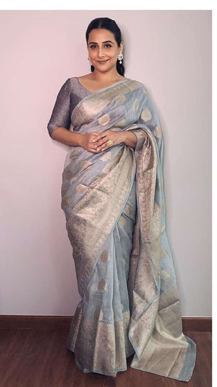 किसी भी पार्टी में एलिगेंट लुक के लिए आप एक्ट्रेस की इस बनारसी लाइट वर्क गोल्डन पेच वर्क साड़ी को ट्राय कर सकती हैं।
