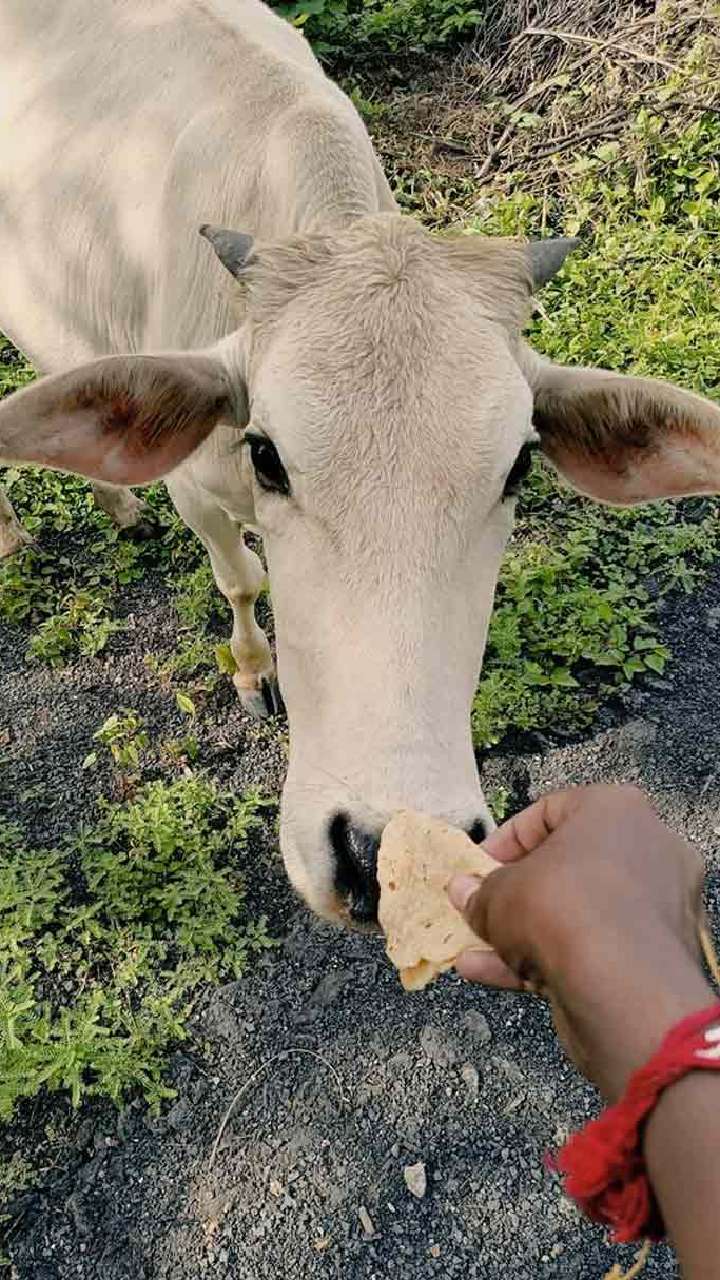 अमावस्या के दिन गाय की सेवा करनी चाहिए, इसके लिए गाय को हरा चारा खिलाएं और रोटी के साथ गुड़ खिलाएं।