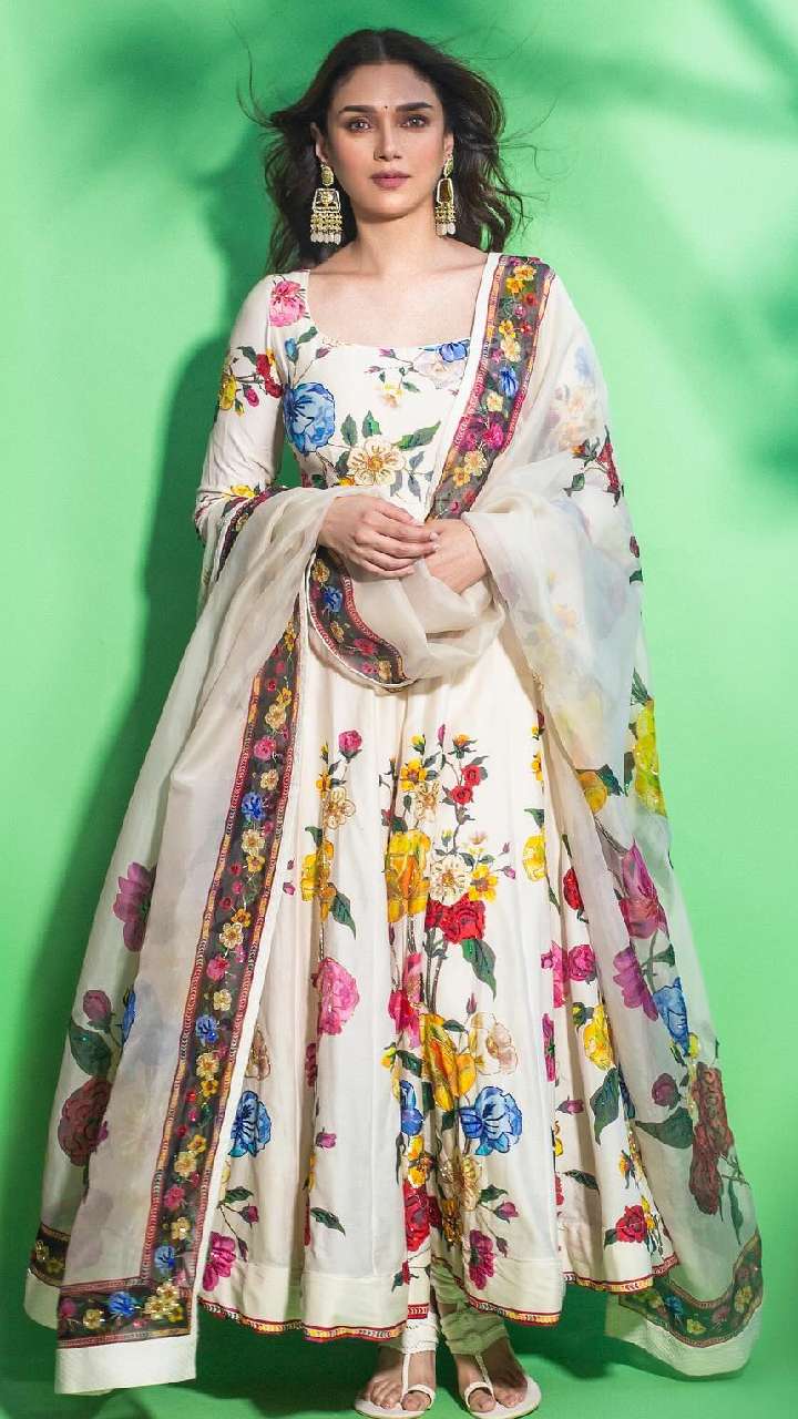 होली पार्टी में गॉर्जियस दिखना चाहती हैं, तो इस तरह के फ्लोरल प्रिंट अनारकली सूट चुनें। इसके साथ ऑक्सीडाइज इयररिंग्स कैरी कर सकती हैं।