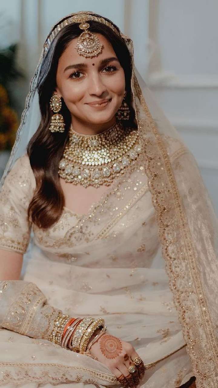 बॉलीवुड की मोस्ट पॉपुलर एक्ट्रेस आलिया भट्ट ने इसी साल 14 अप्रैल 2022 में रणबीर कपूर संग सात फेरे लिए। अभिनेत्री का ब्राइडल लुक फैंस ने जमकर पसंद किया।