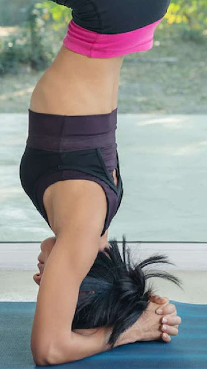 अब शरीर का संतुलन बनाए रखते हुए पैरों को ऊपर की ओर ले जाएं और सिर के बल एकदम सीधे हो जाएं।