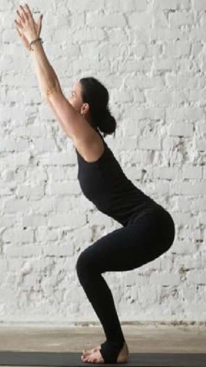 जबकि अपने शरीर को धीरे-धीरे बैठने की मुद्रा में लाएं। इस मुद्रा में कुछ पल के लिए रुकें। इसके बाद पुनः अपनी मुद्रा में आ जाएं।