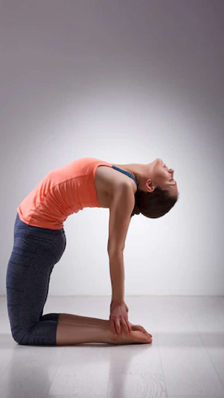 इस आसन को करने के लिए घुटनों के बल लेट जाएं, हथेलियों को पैरों पर ले जाएं और पीठ को पीछे की ओर झुकाएं। गर्दन को इसी अवस्था में रखें और फिर वापस इसी मुद्रा में आएं।