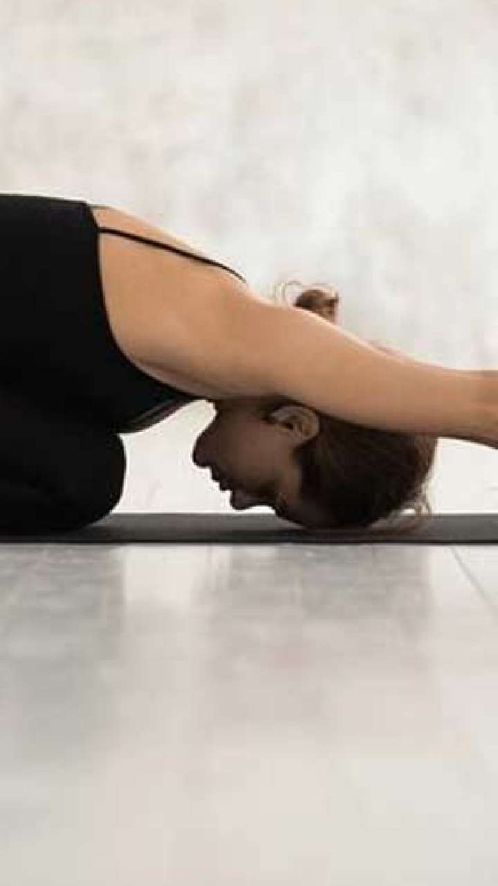 ऐसा करने से पेट पर दबाव पड़ेगा, हथेलियां जमीन को छूनी चाहिए और सिर भी जमीन से छूना चाहिए। इस मुद्रा में थोड़ी देर रहने से रिलैक्स मुद्रा में आ जाएं।