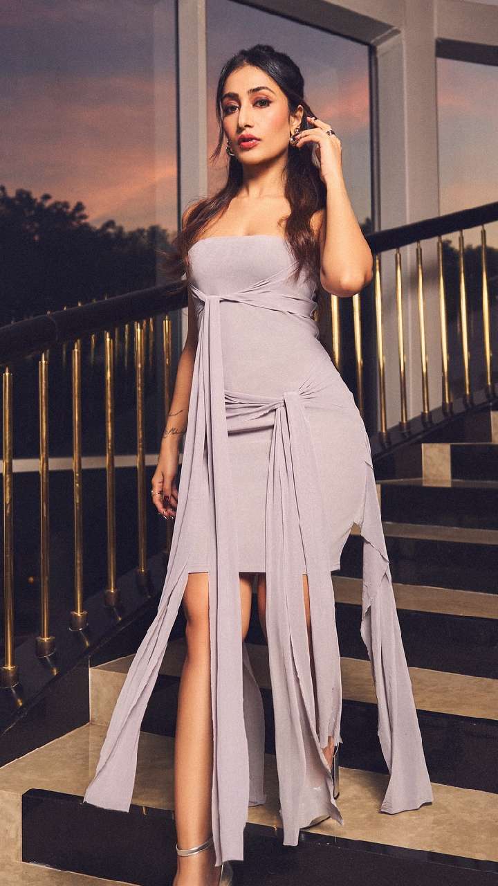 नाइट पार्टी में हॉटनेस का तड़का लगाना चाहती हैं, तो एक्ट्रेस की तरह थाई हाई स्लिट ड्रेस को ट्राई करें। इसके साथ उन्होंने प्यारा सा नेकलेस पेयर किया है।