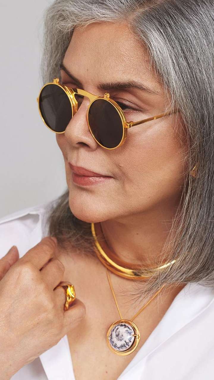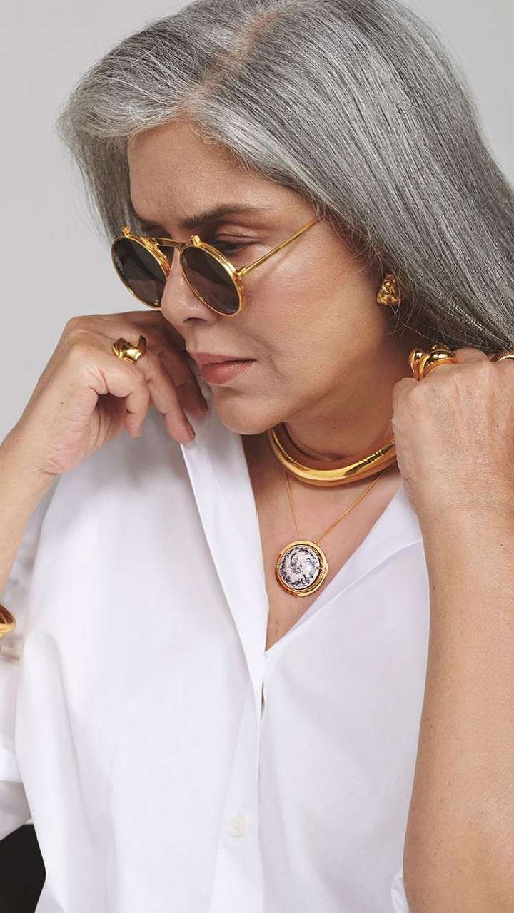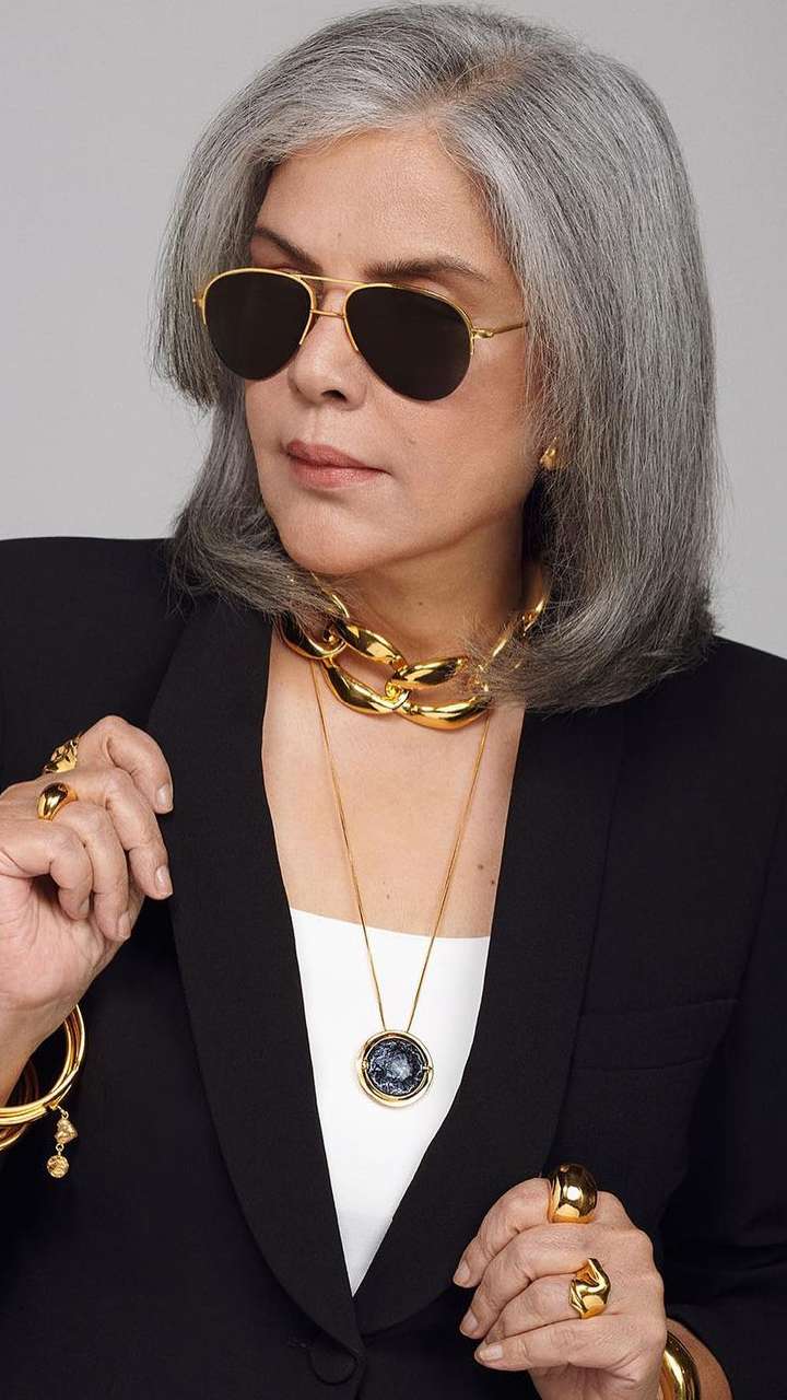 दिग्गज अभिनेत्री ने अपने इस लुक को गोल्डन ज्वेलरी के साथ पेयरअप किया। उन्होंने गले में एक लॉकेट पहना जिसमें उनकी ब्लैक एंड व्हाइट तस्वीर लगी हुई है।