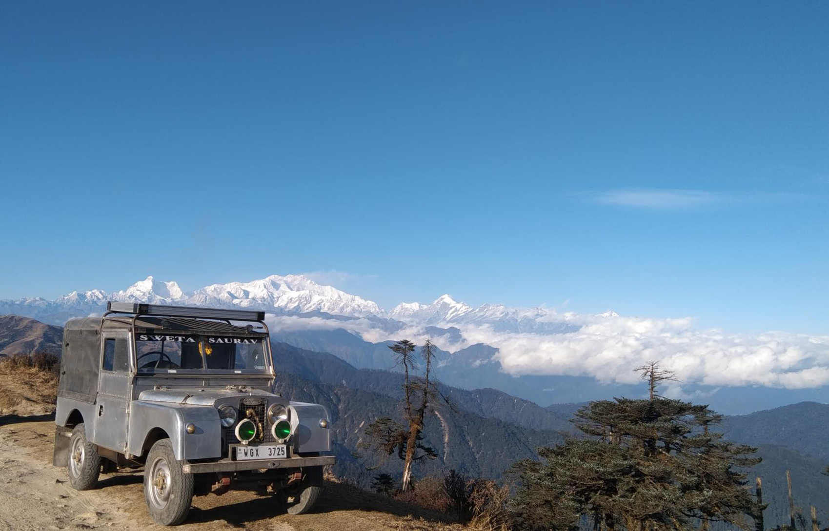 (संदकफू जाने के लिए इस्तेमाल की जाने वाली लैंड रोवर कार। यह कार 1954 की है।)