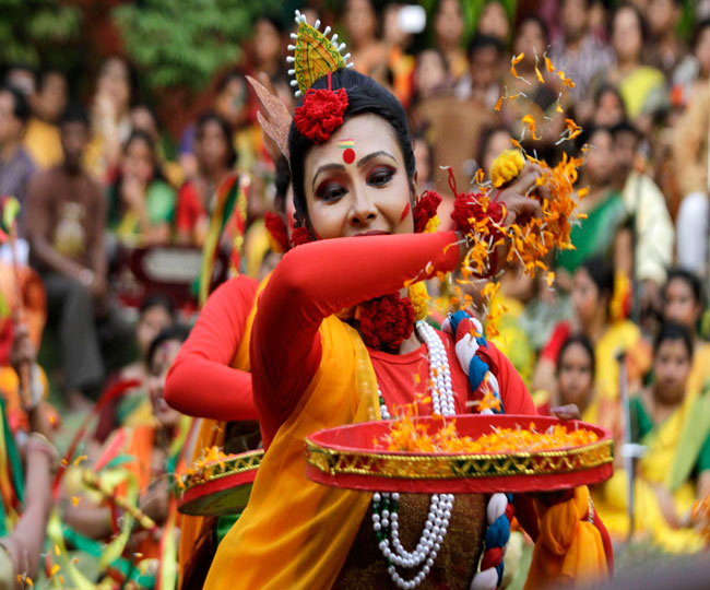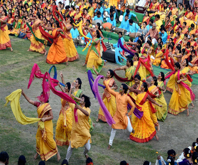 कविगुरू रवीन्द्रनाथ टैगोर ने वर्षो पहले यहां बसंत उत्सव की परंपरा शुरू की थी, वो आज भी जैसी की तैसी है। विश्वभारती विश्वविद्यालय परिसर में छात्र और छात्रएं पारंपरिक तरीके से होली मनाती हैं। लड़कियां लाल किनारी वाली पीली साड़ी में होती हैं। और लड़के धोती और कुर्ता पहनते हैं। वहां इस आयोजन को देखने के लिए बंगाल ही नहीं, बल्कि देश के दूसरे हिस्सों और विदेशों तक से भी भारी भीड़ उमड़ती है।